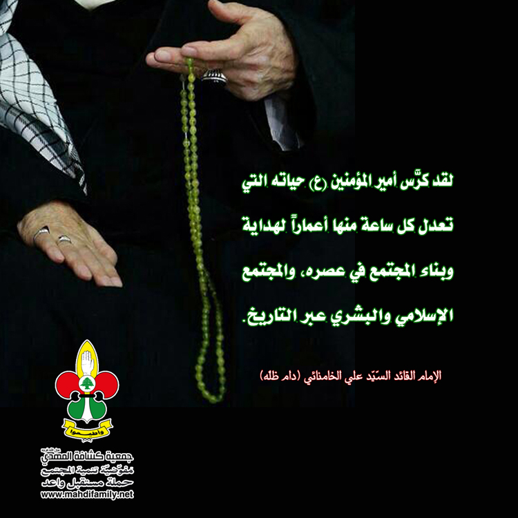 "لقد كرّس أمير المؤمنين (ع) حياته الّتي تعدل كلّ ساعة منها أعماراً لهداية وبناء المجتمع في عصره، والمجتمع الإسلامي والبشري عبر التّاريخ".