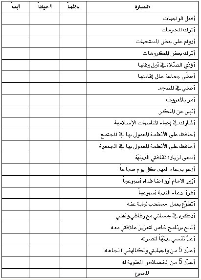 بين يديك بطاقة حاول أن تملأ خاناتها بمصداقية، فهي تخصّك وحدك دون سواك، بعد الإنتهاء إجمع الأعمدة وتامّل فيها جيدا فهي تؤشر لك عن نقاط حساسة وحيوية في حياتك اليومية.