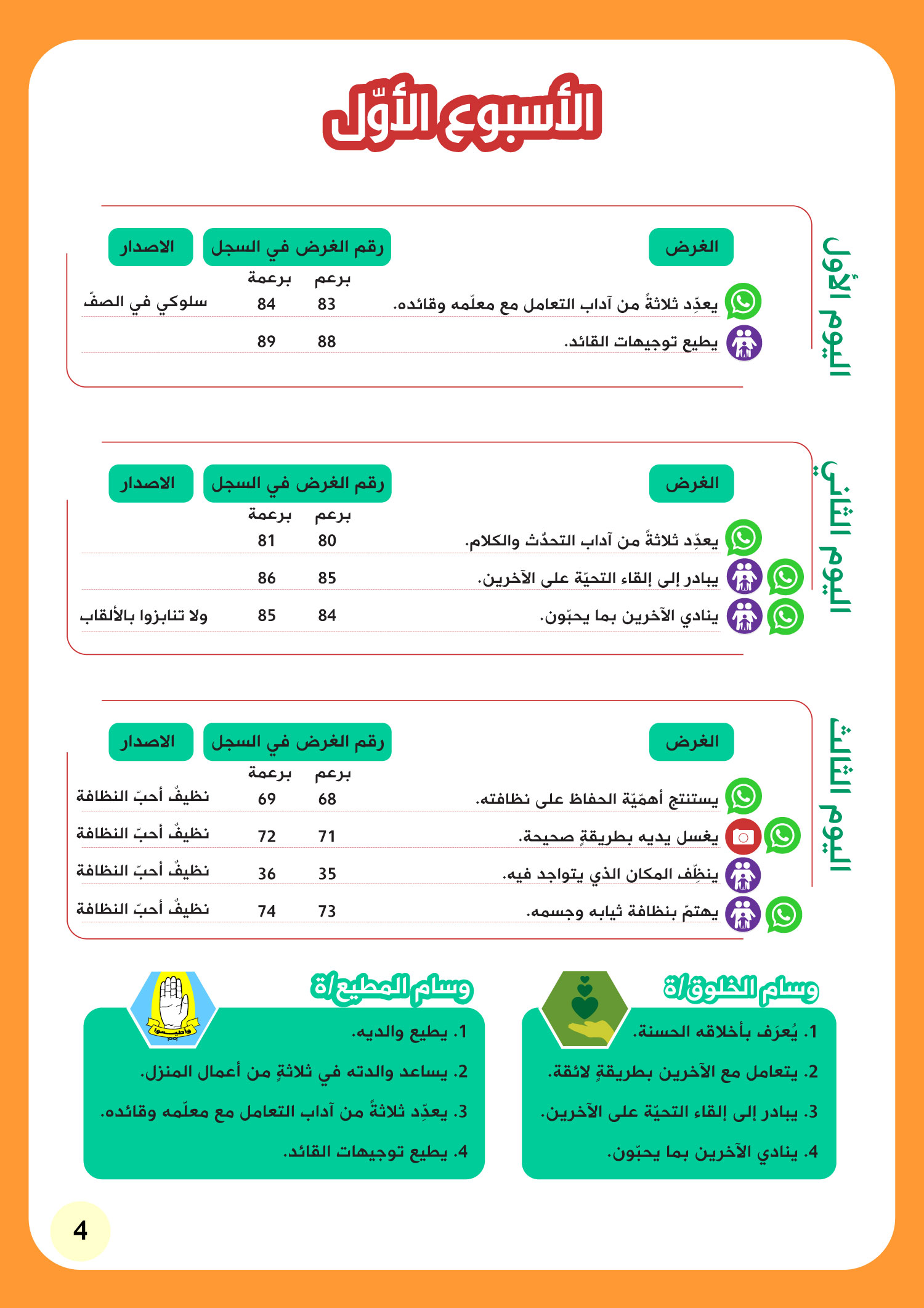لذا نأمل من جنابكم الكريم التعاون وتشجيع ولدكم على تحقيق عشرين غرضًا بالحدّ الأدنى، وإتاحة الفرصة له/ا للتواصل مع القائد/ة.