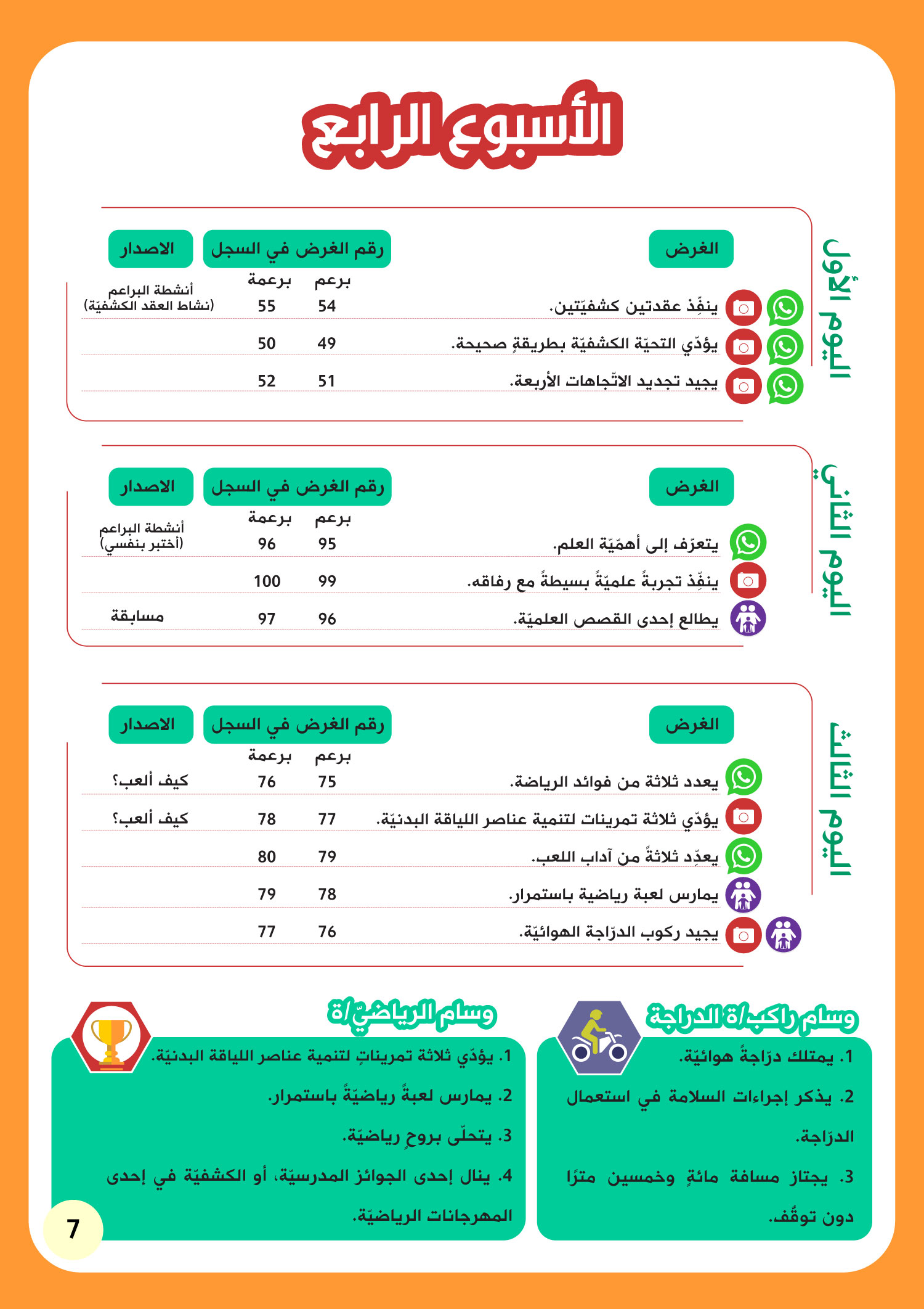 لذا نأمل من جنابكم الكريم التعاون وتشجيع ولدكم على تحقيق عشرين غرضًا بالحدّ الأدنى، وإتاحة الفرصة له/ا للتواصل مع القائد/ة.