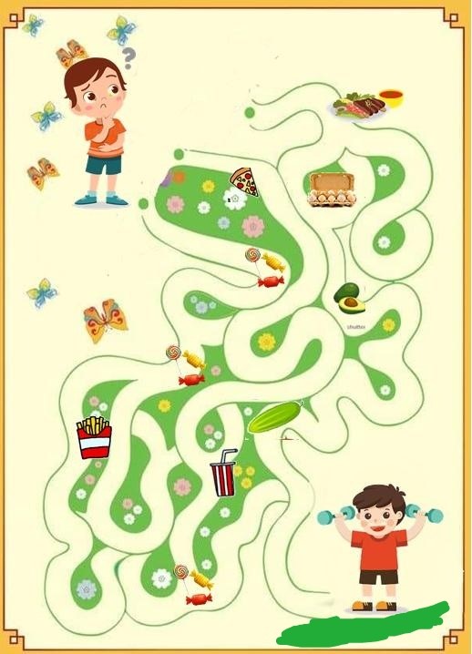 "جواد" يريد بناء جسم قويّ وصحّي، أيّ طريق عليه أن يختار: طريقًا مليئًا بأطعمةٍ صحّيّة، أم طريقًا مليئًا بالسكاكر والدهنيات؟