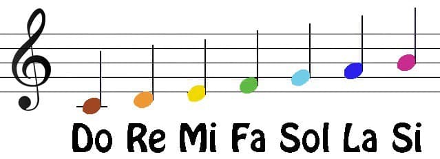 السلّم الموسيقي: هو الأسطر التي نكتب عليها النغمات كاللّغه ايضاّ و يتكون المدرج الموسيقي من خمس خطوط أفقية متوازية تعد من أسفل إلى أعلى. النغمات الموسيقيّة: وهي بمثابة الأحرف في اللغة، فالنغمات هي أحرف لغة الموسيقى التي من خلالها نستطيع أن نقرأ وأن نكتب الموسيقى. وعددهم سبع نغمات أساسيات هم: