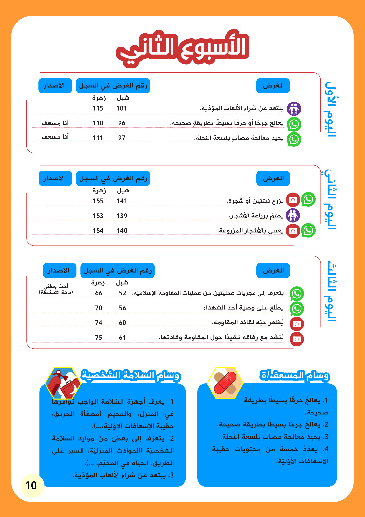 لذا نأمل من جنابكم الكريم التعاون وتشجيع ولدكم على تحقيق عشرين غرضًا بالحدّ الأدنى، وإتاحة الفرصة له/ا للتواصل مع القائد/ة.