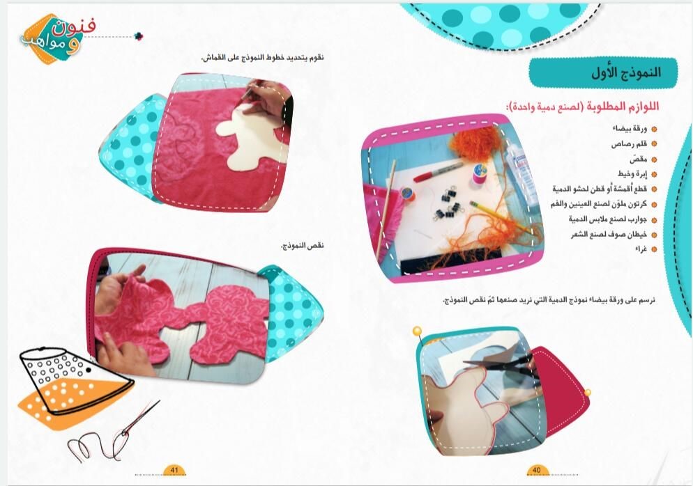 - نبدأ بخياطة النموذج ثم نحشوه بالقطن أو بقايا القماش.