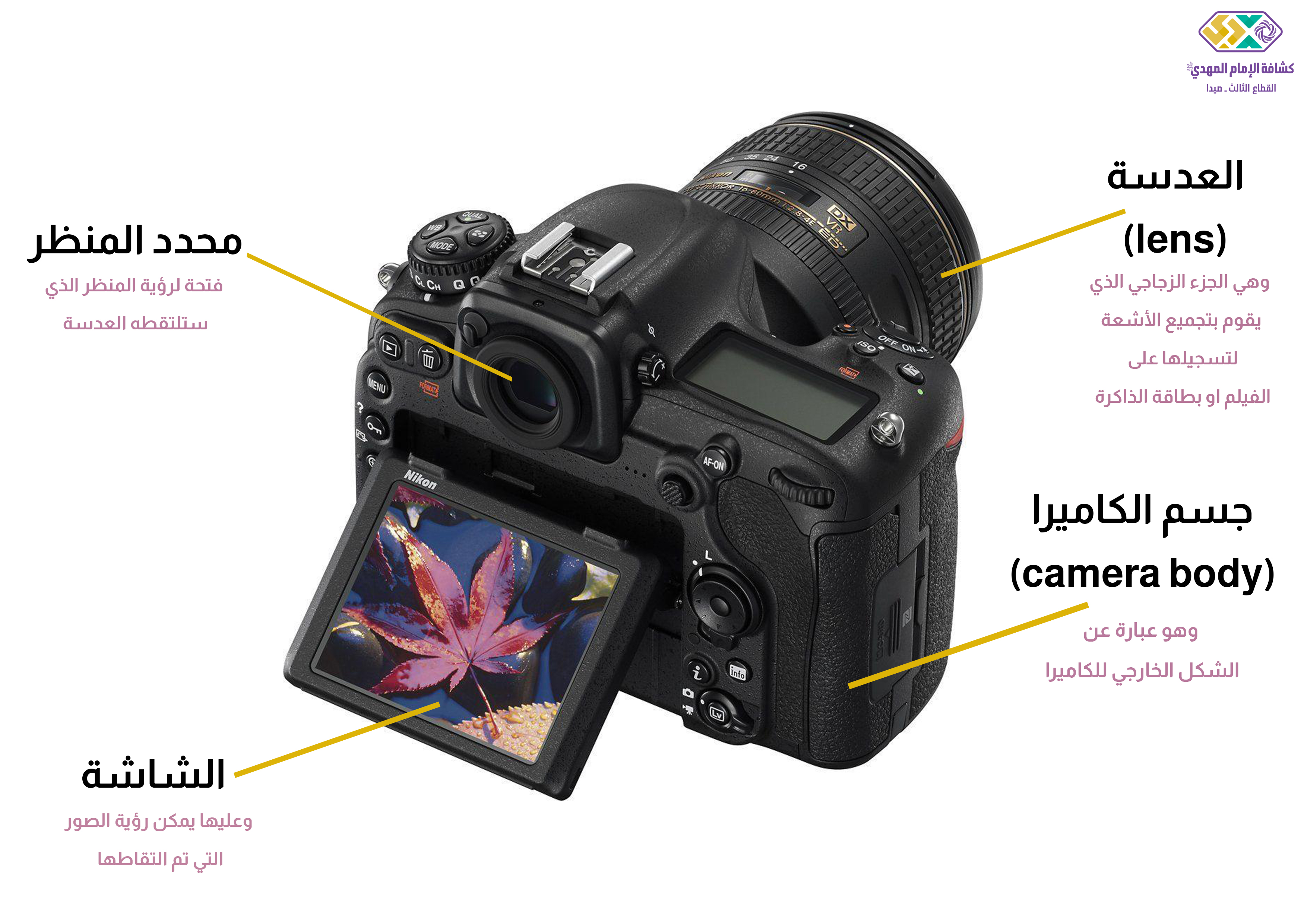 تتعدّد أجزاء الكاميرا باختلاف أحجامها وأشكالها؛ لذلك سنذكر الأجزاء العامّة الموجودة في أيّة كاميرا: