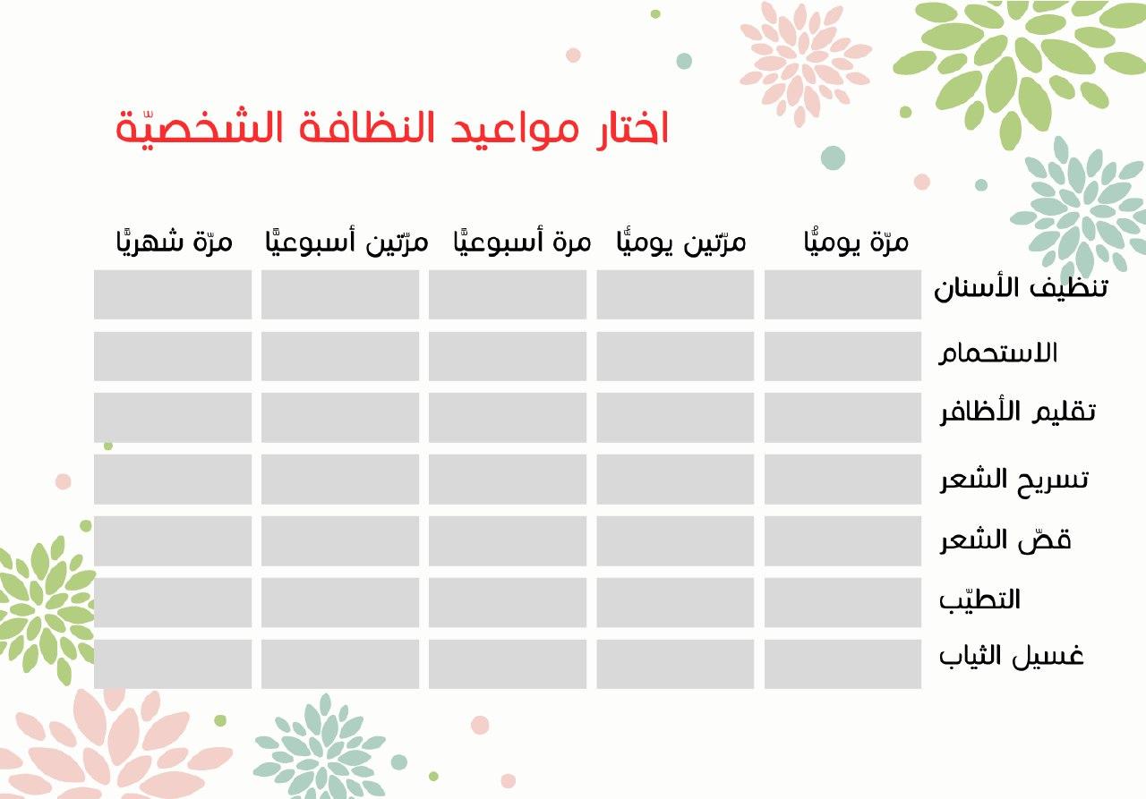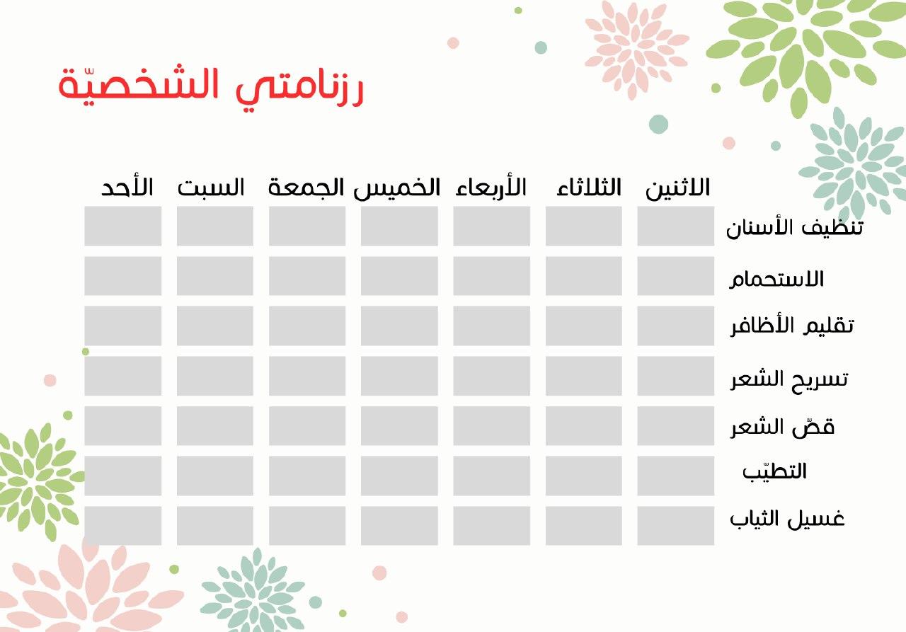 رزنامة النظافة الشخصيّة --- 5 د. --- عمل فردي.