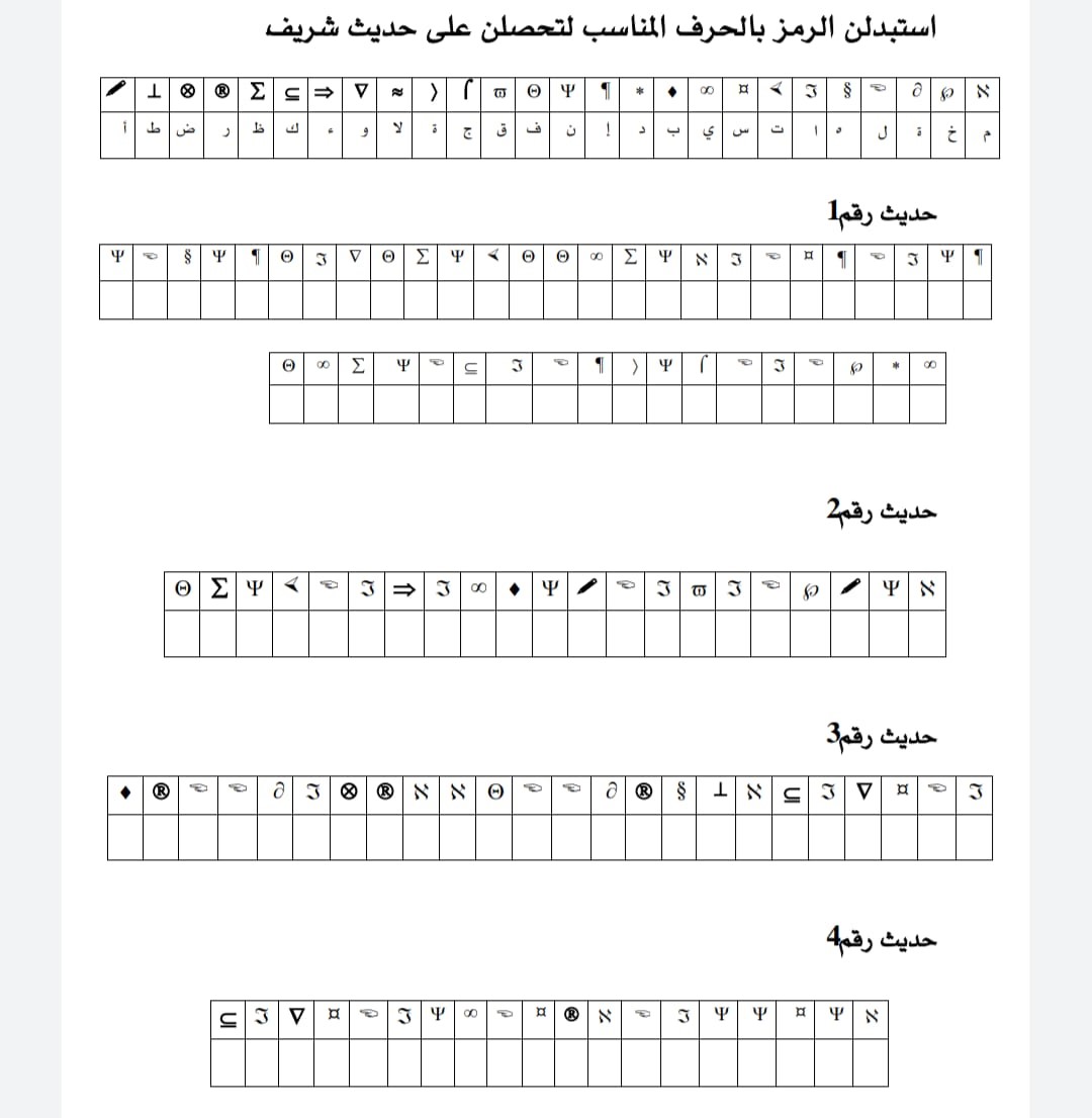 يُوزّع القائد المشاركين إلى أربع طلائع في مجموعات منفصلة عن المجموعة الرئيسية، ويُرسل لهم ملحق لعبة فك الرموز لتركيب الأحاديث في مهلة خمس دقائق.
