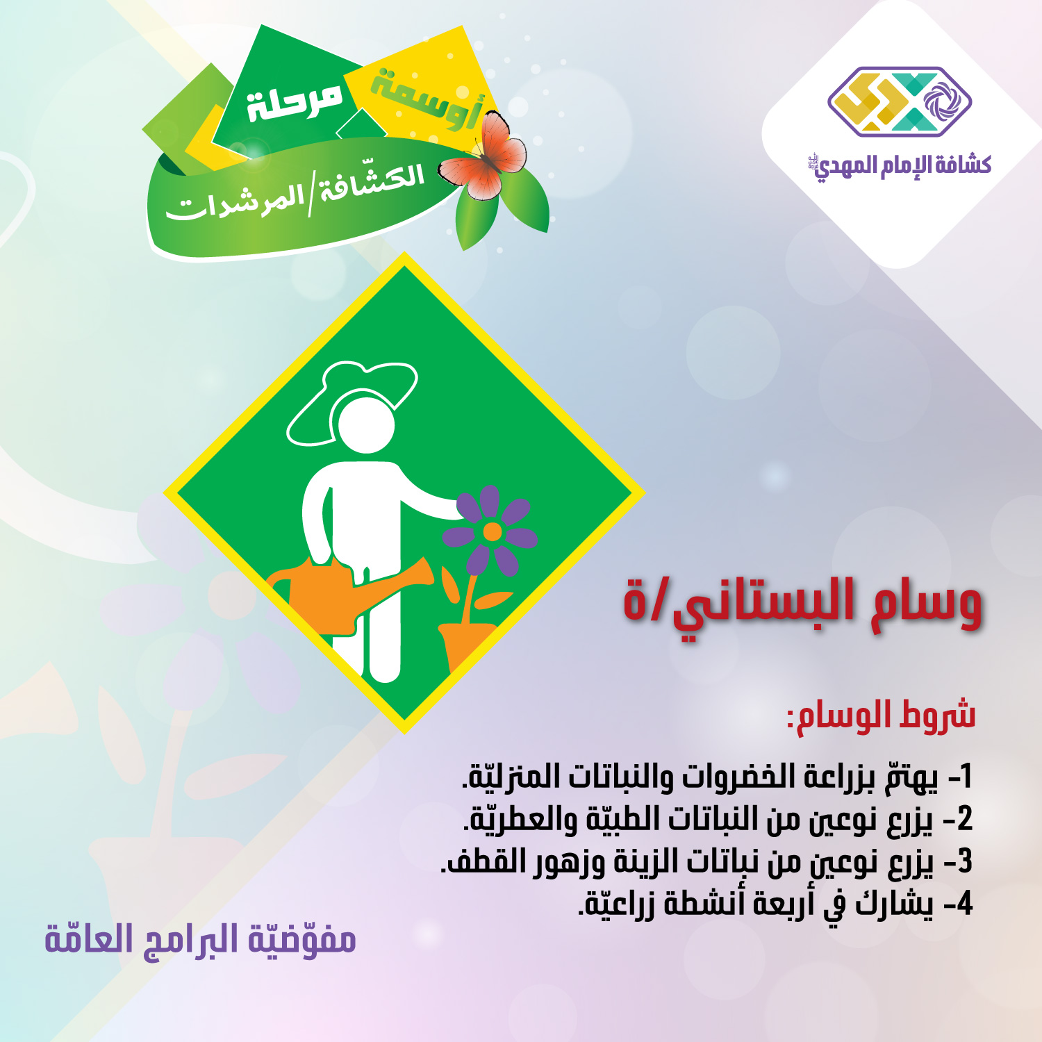 - يهتمّ بزراعة الخضروات والنباتات المنزليّة. (كشافة: 139، مرشدات: 141)