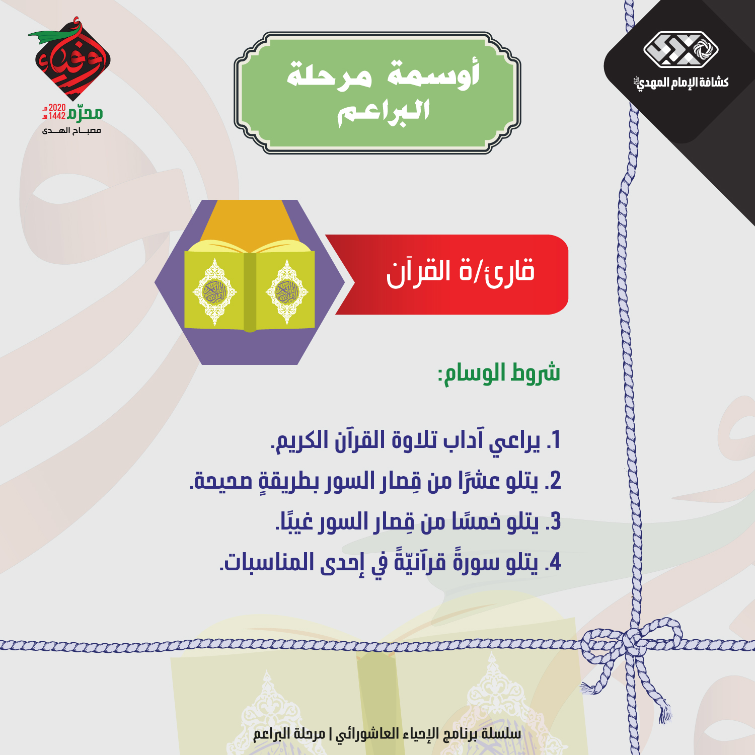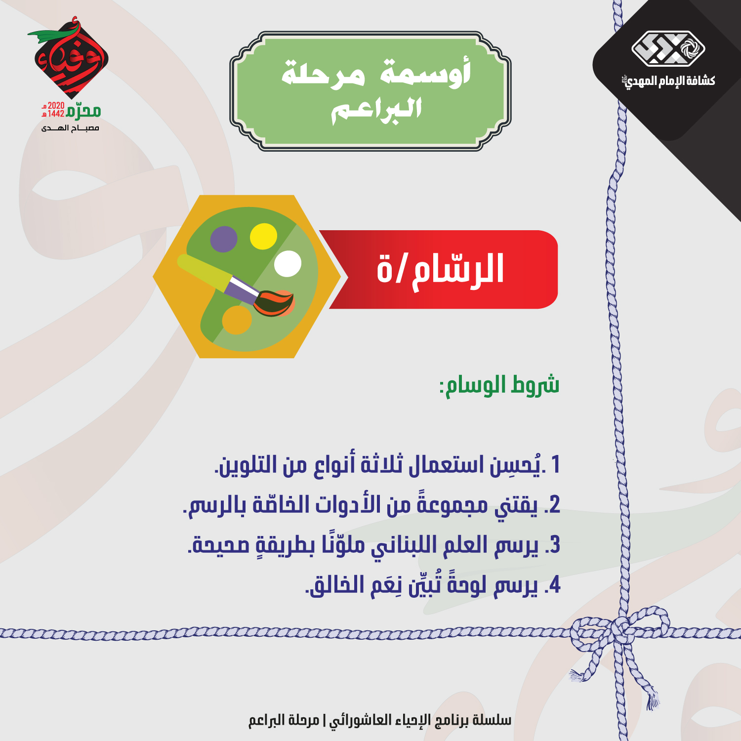 يعرض القائد مطالب وسام الرسام/ة، ويطلب من المشاركين رسم مشهد يعبّر عن عاشوراء وأحداث كربلاء أو عن مشاعرهم اتجاه الامام الحسين (عليه السلام)، ثمّ يرسلون الرسمات على المجموعة في اليوم التالي.
