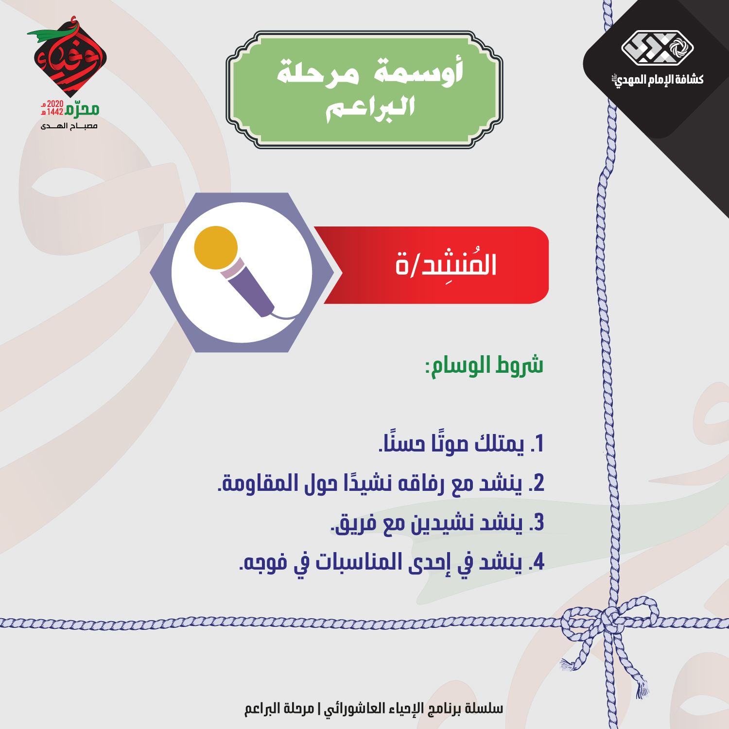 يعرض القائد مطالب وسام المنشد/ة، ويرسل القائد نص القصيدة مسبقًا لعددٍ من البراعم، ويطلب منهم تسجيل فيديو أو تسجيل صوتي وهم يلقون القصيدة لاخوتهم أو أصدقائهم.