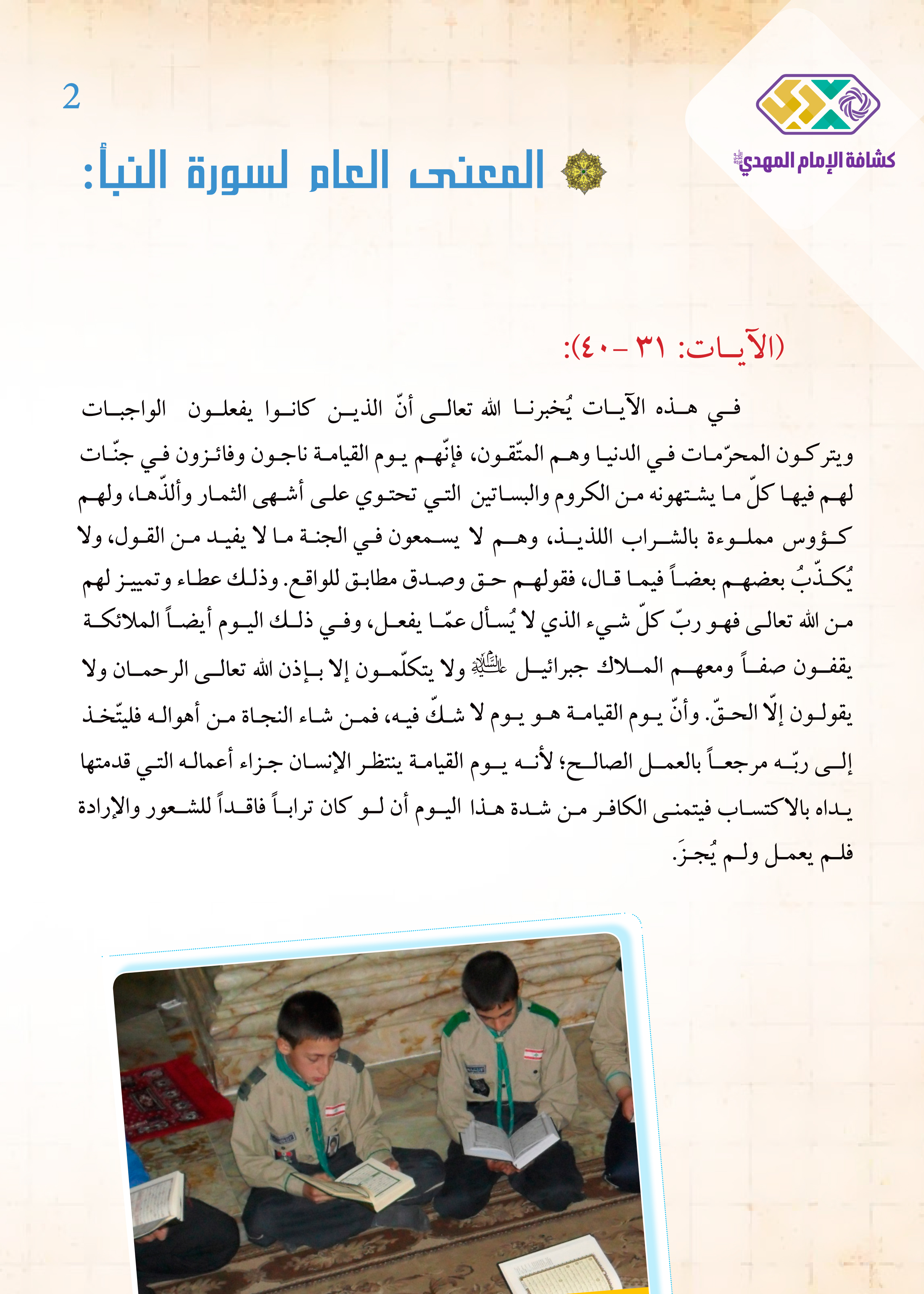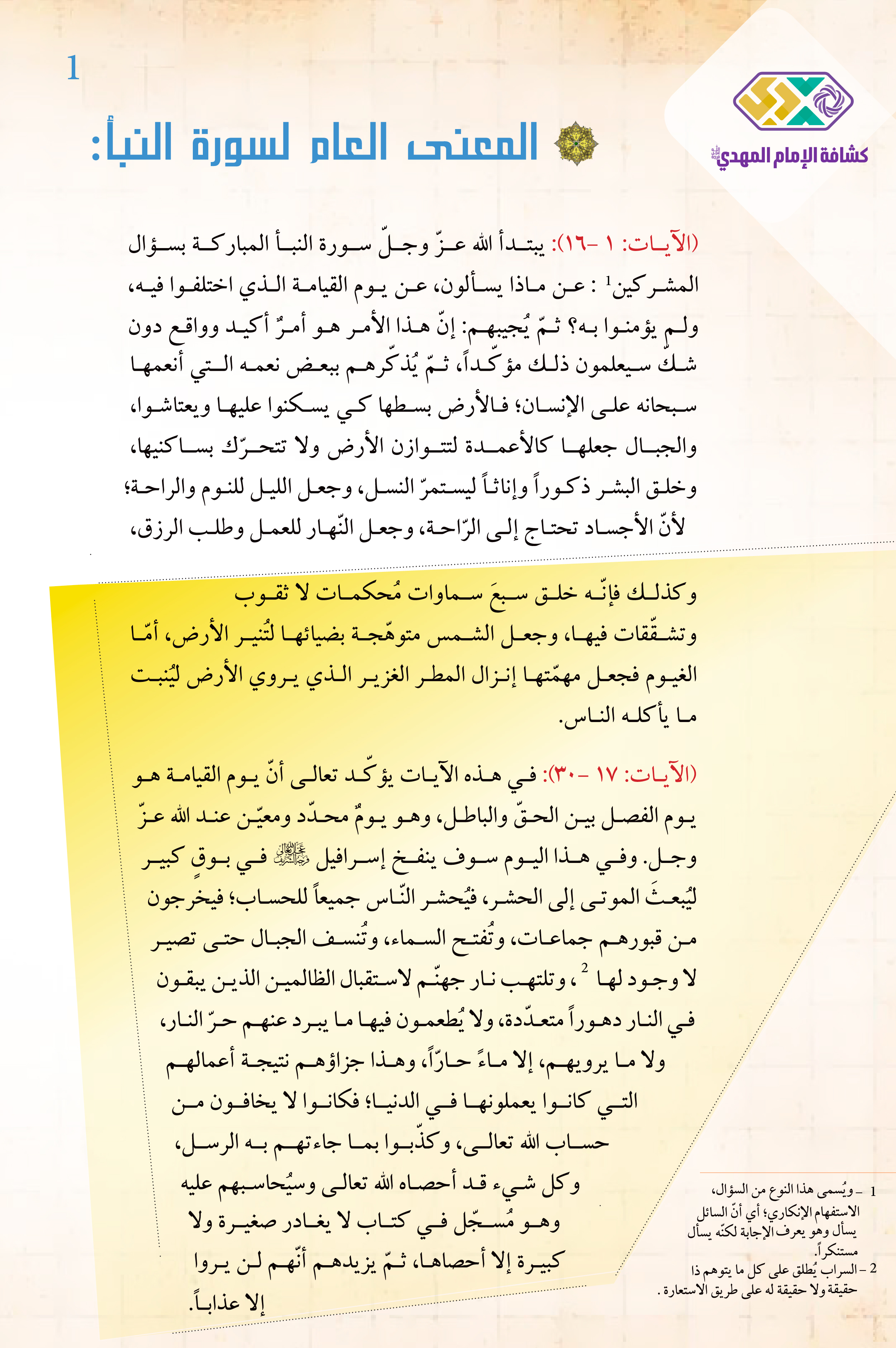 1. أتعرّف إلى المعنى العامّ لسورة النبأ.