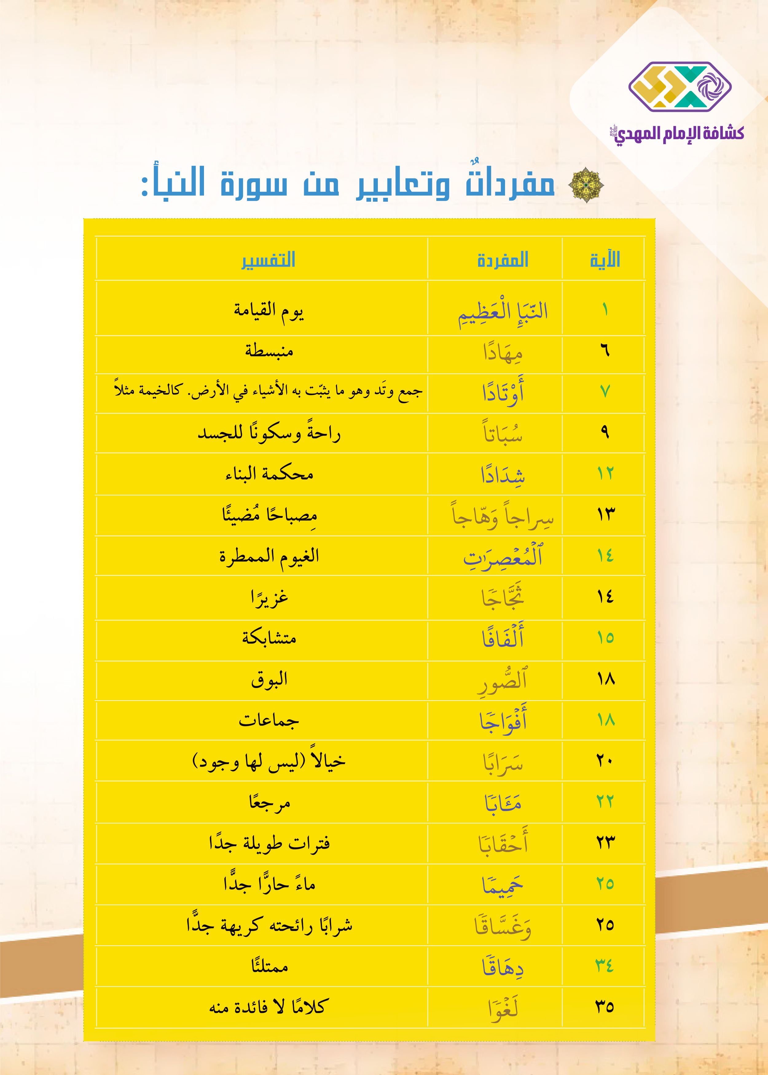 2. أتعرّف إلى معاني مفردات من سورة النبأ.