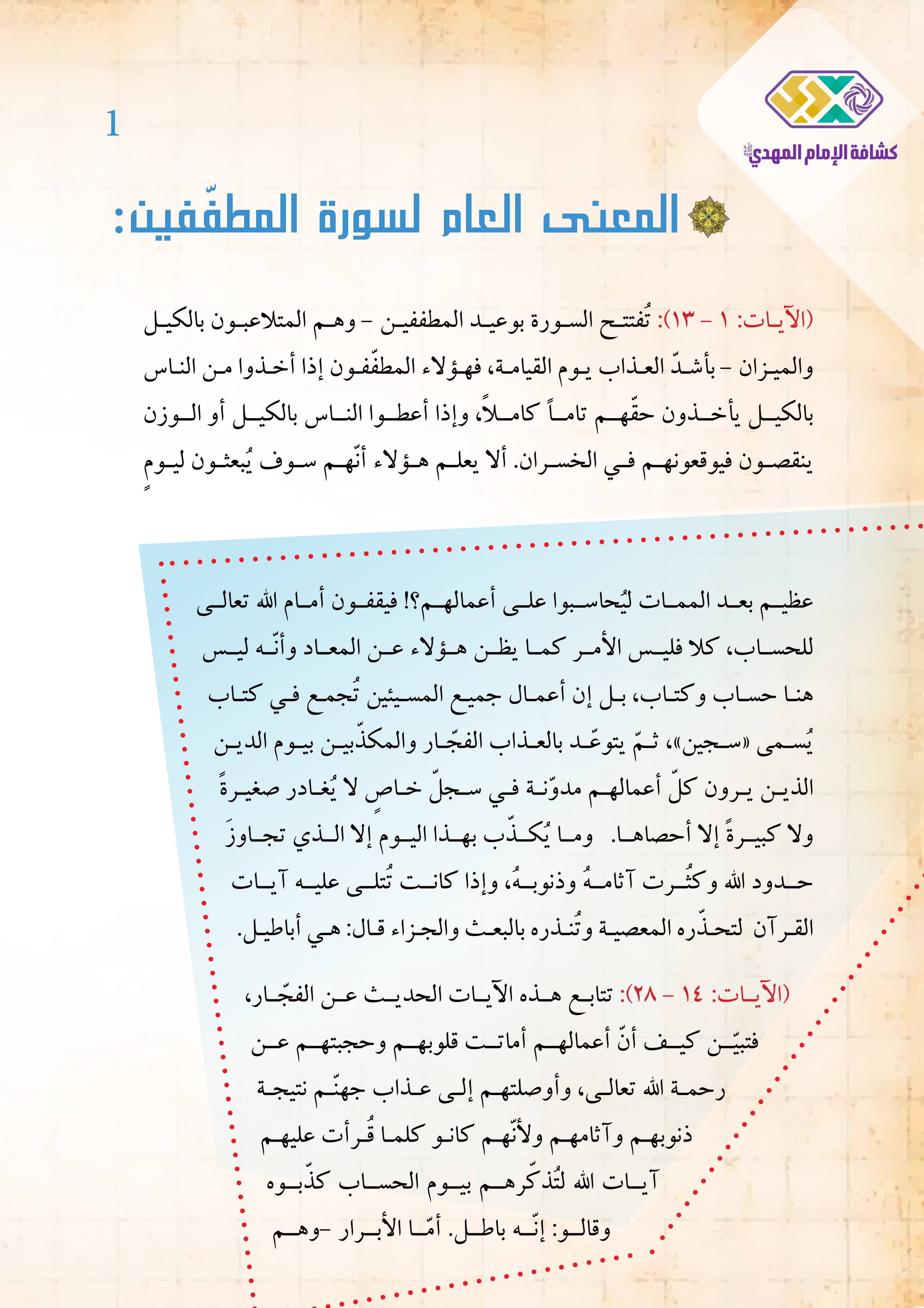 1- أتعرّف إلى المعنى العامّ لسورة المطفّفين.