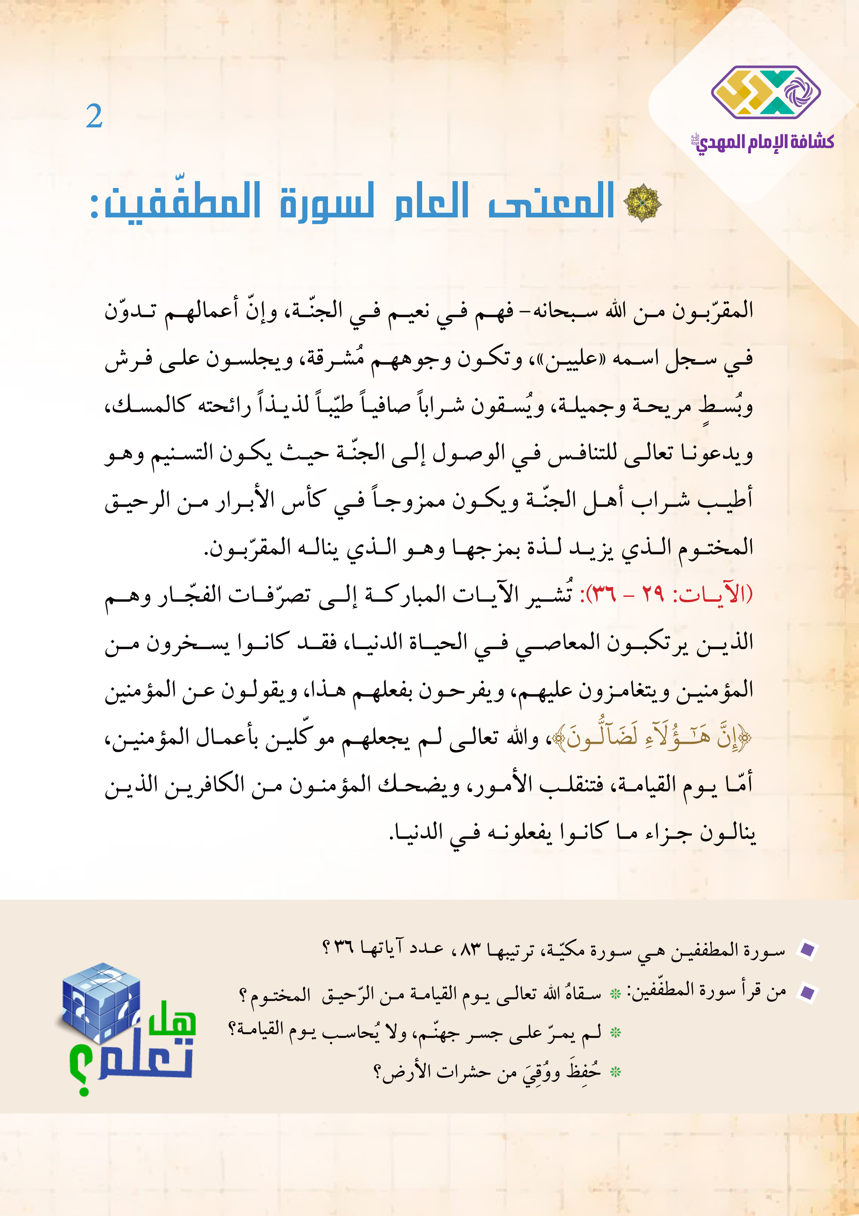 الهدف: أحفظ سورة المطفّفين المباركة.