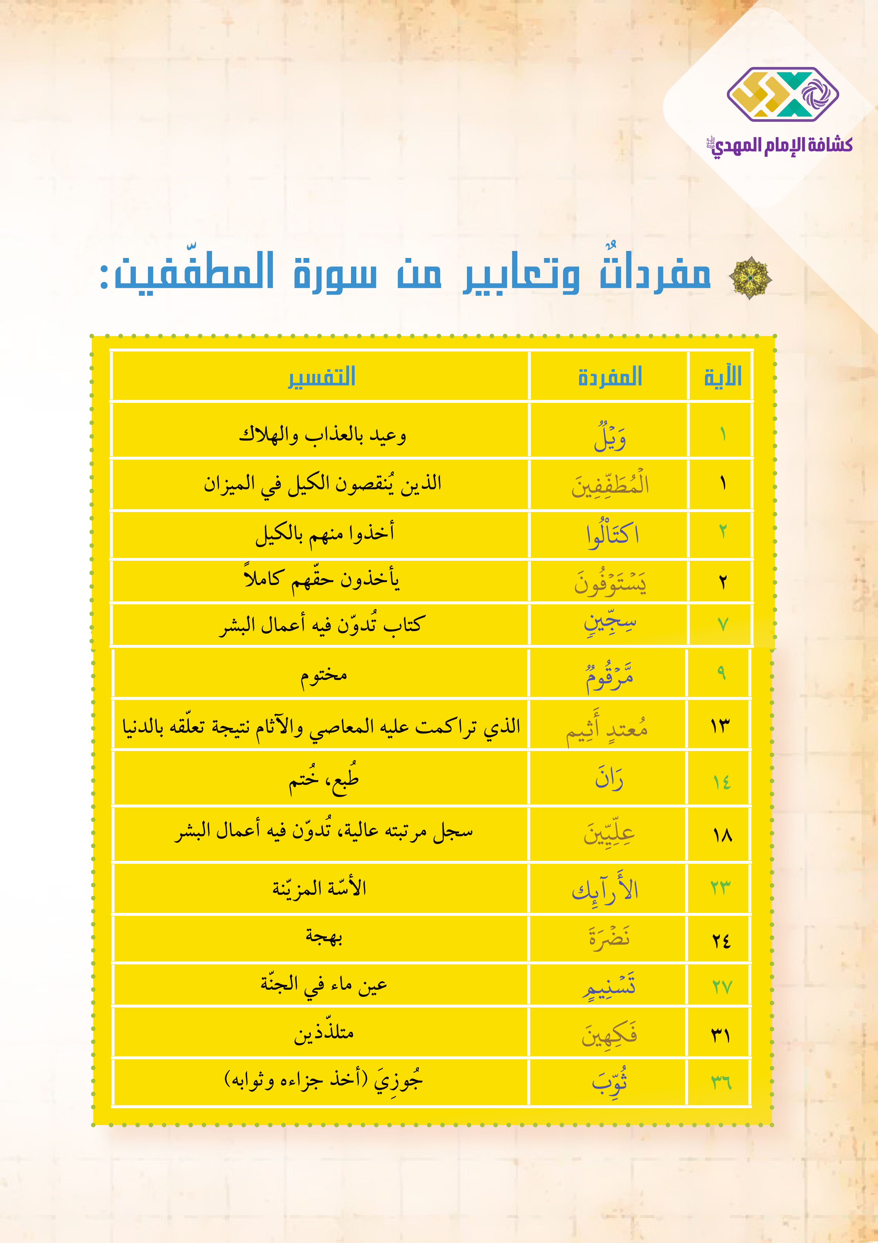 2- أتعرّف إلى معاني مفردات من سورة المطفّفين.