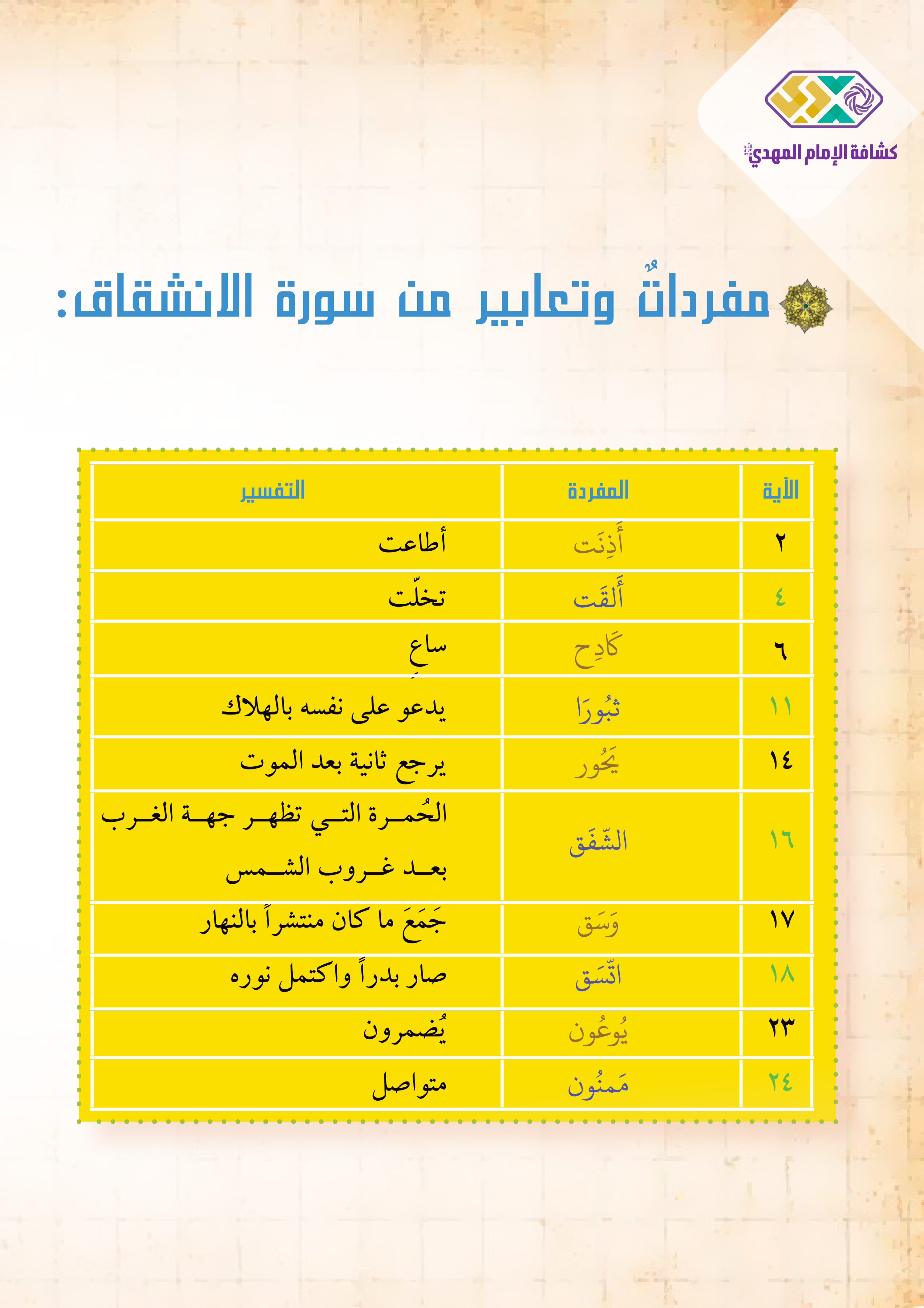 2. أتعرّف إلى معاني مفردات من سورة الإنشقاق.