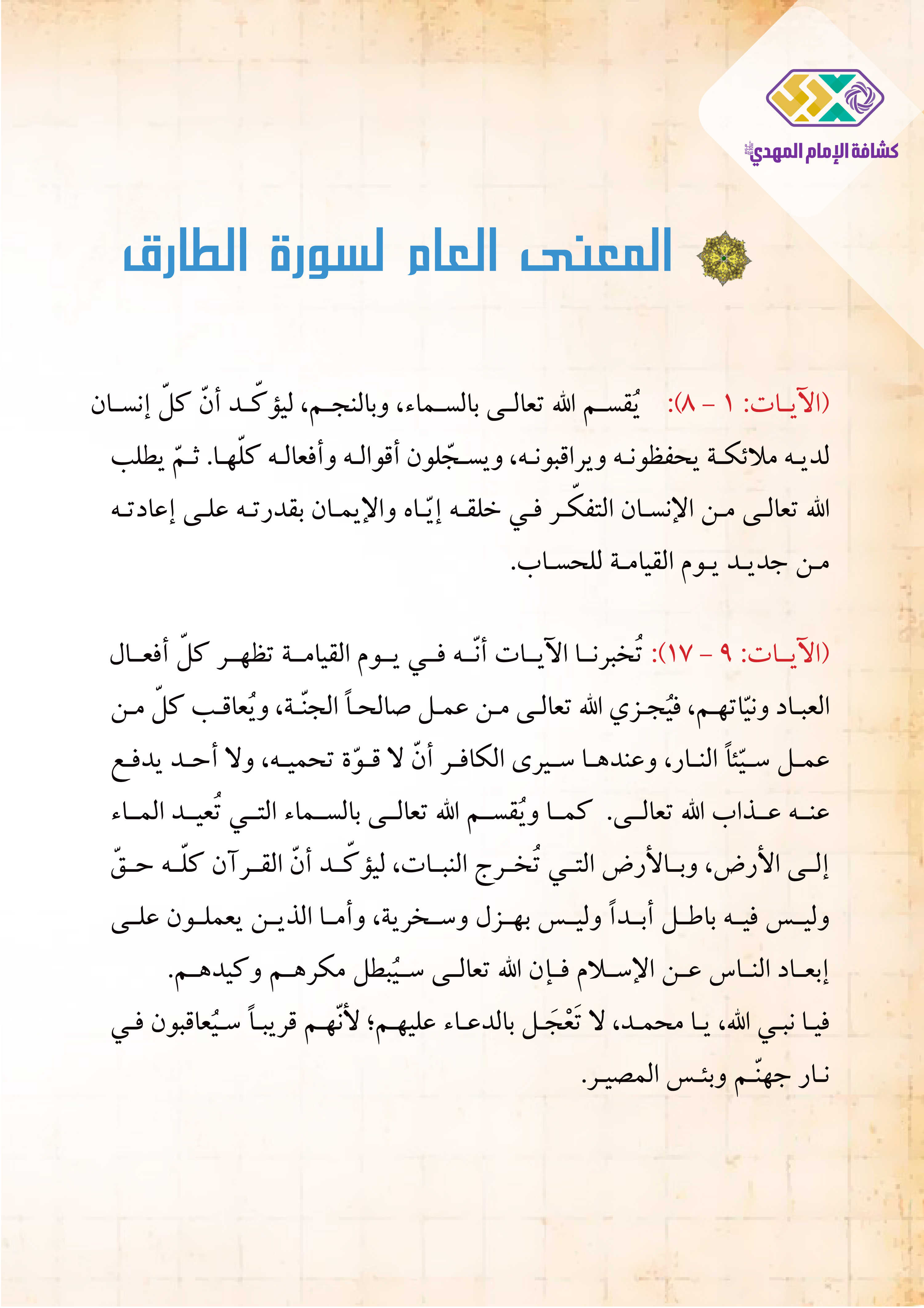 1. أتعرّف إلى المعنى العامّ لسورة الطارق.