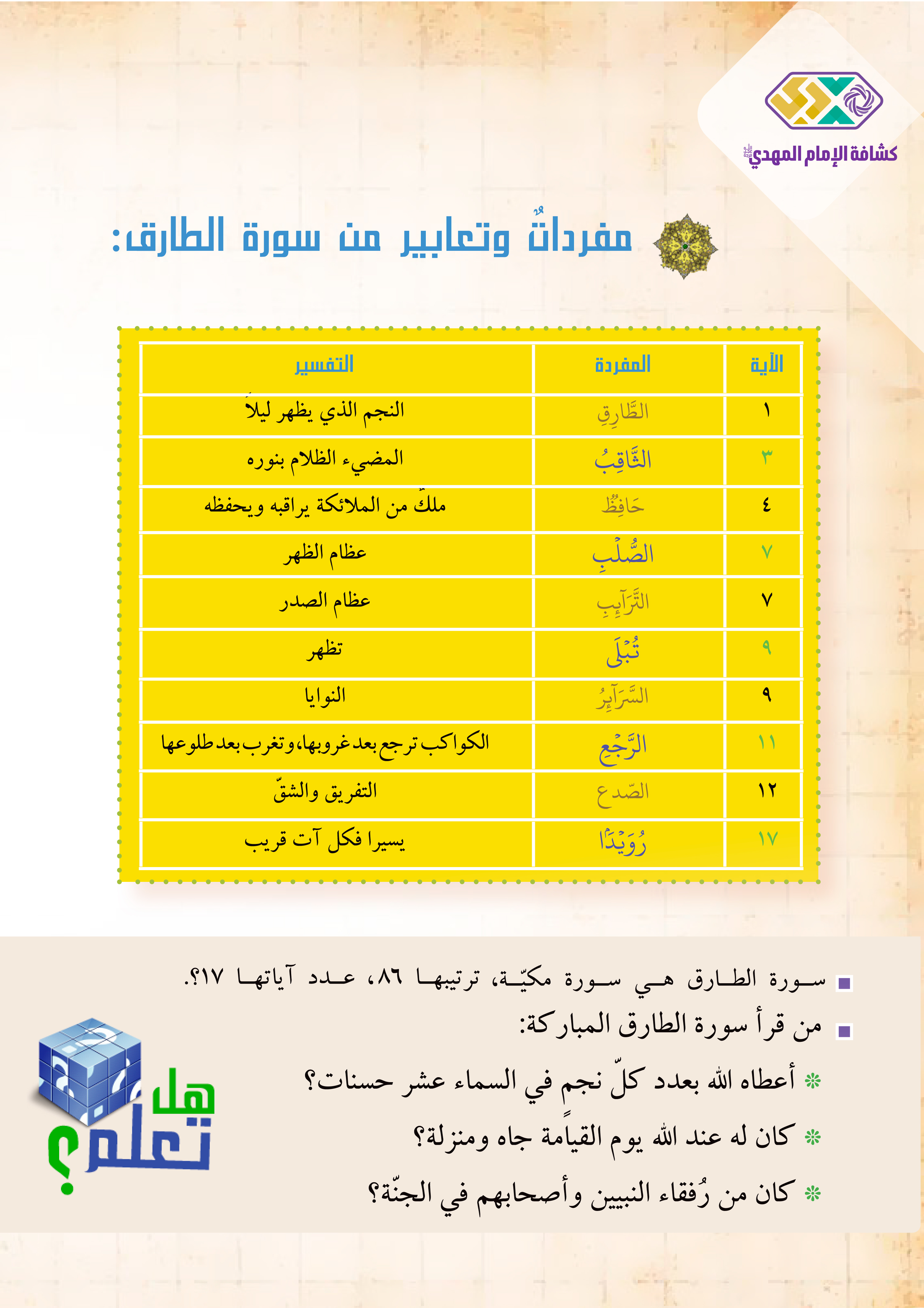 2. أتعرّف إلى معاني مفردات من سورة الطارق.