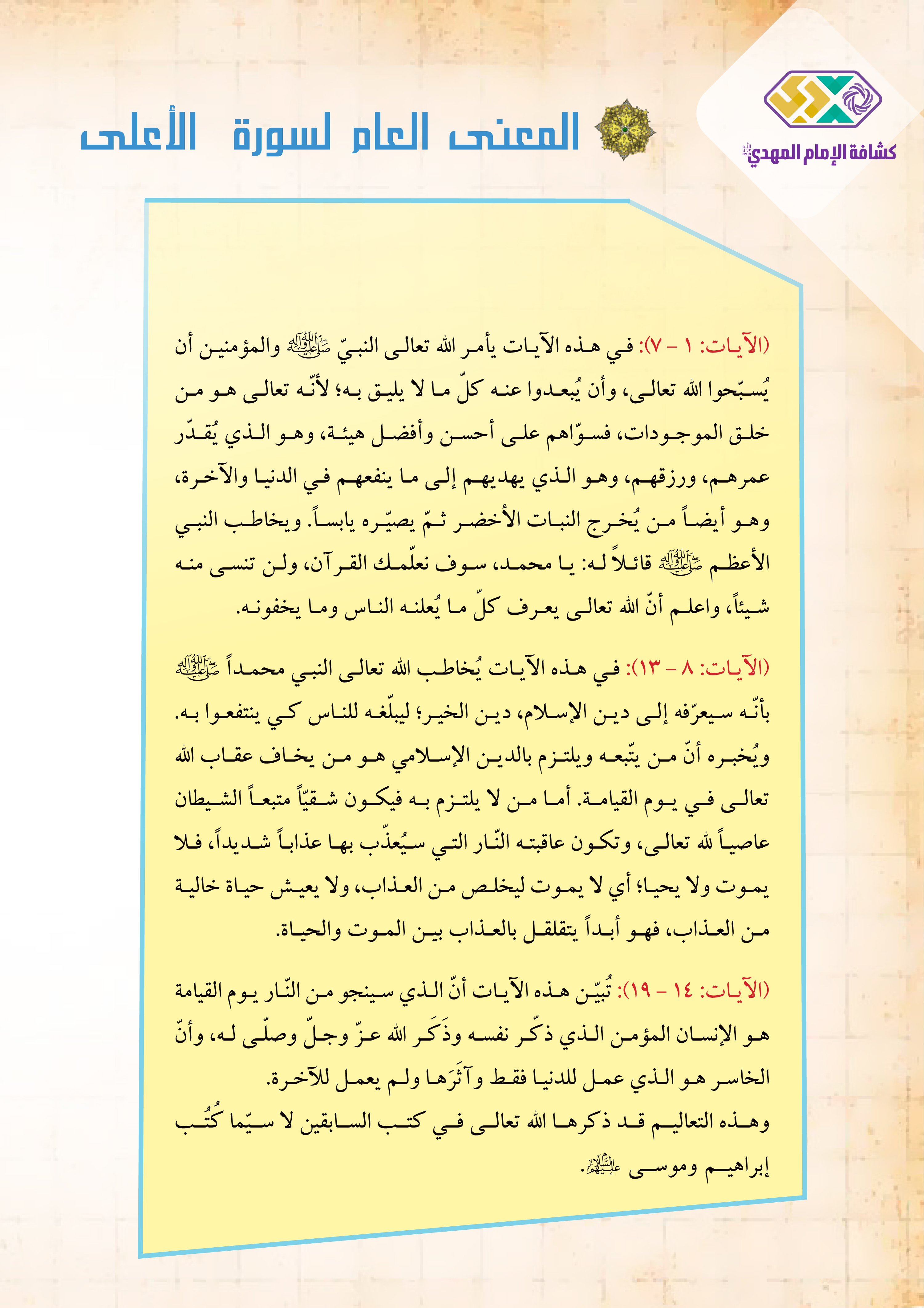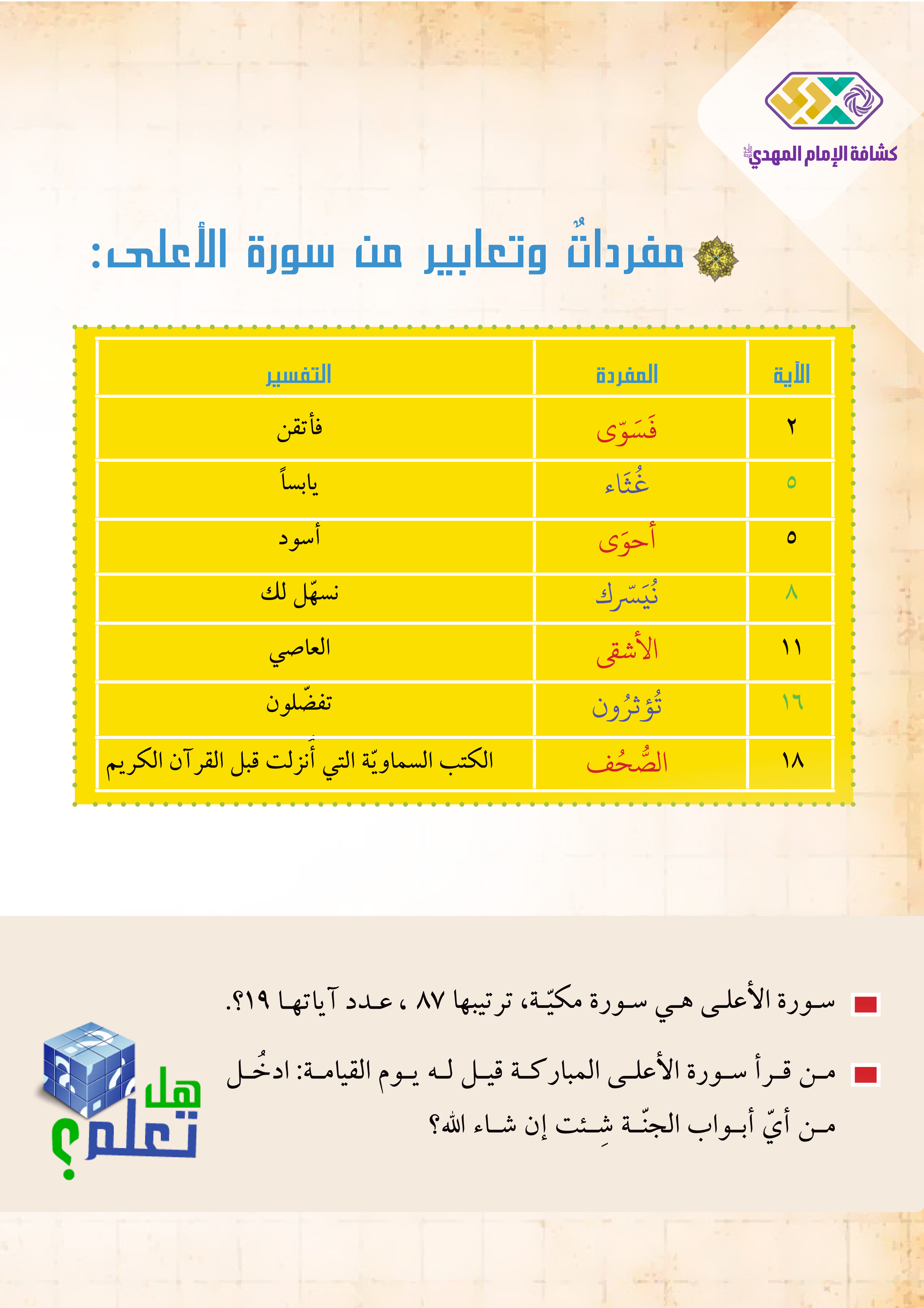 1. أتعرّف إلى المعنى العامّ لسورة الأعلى.