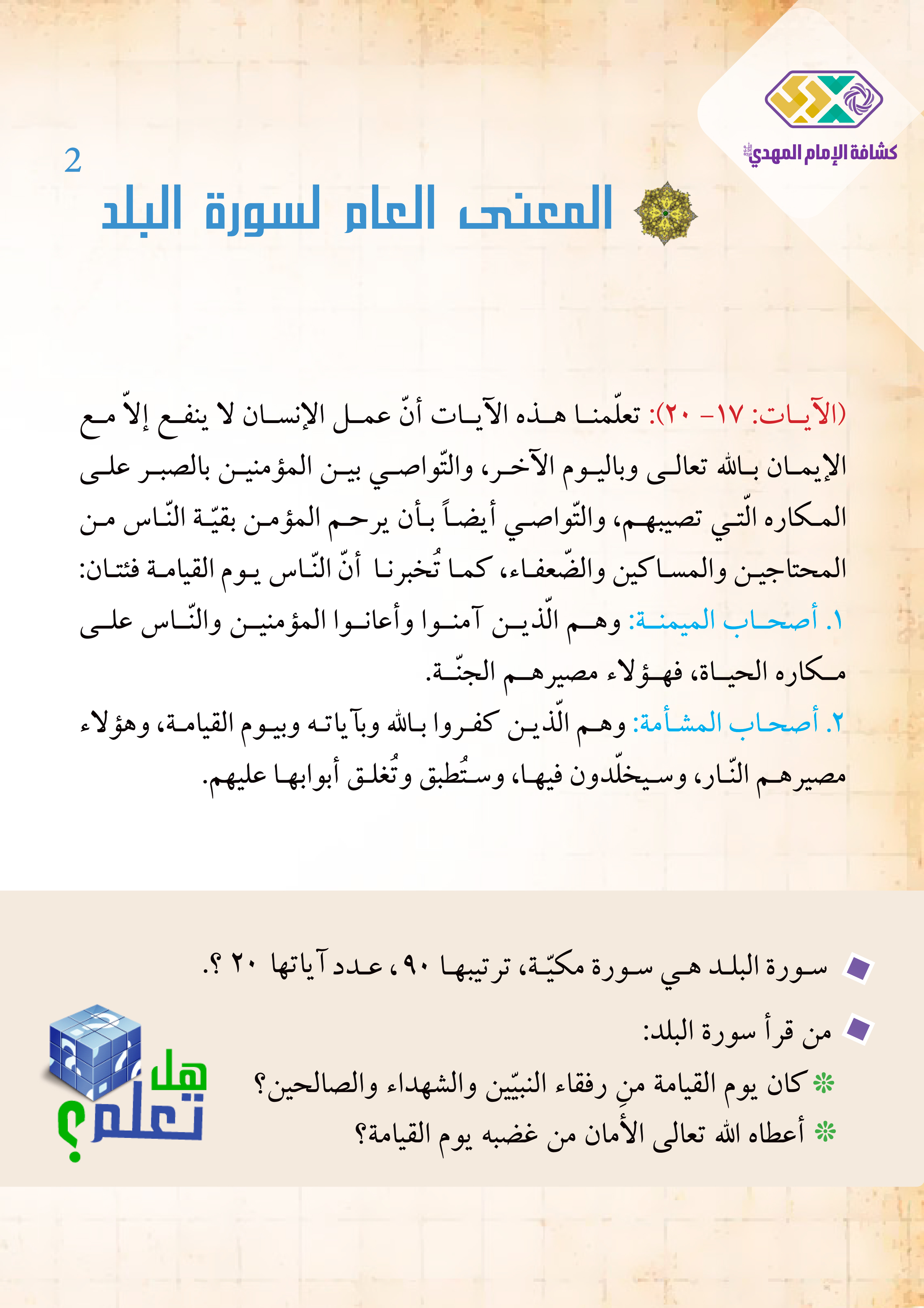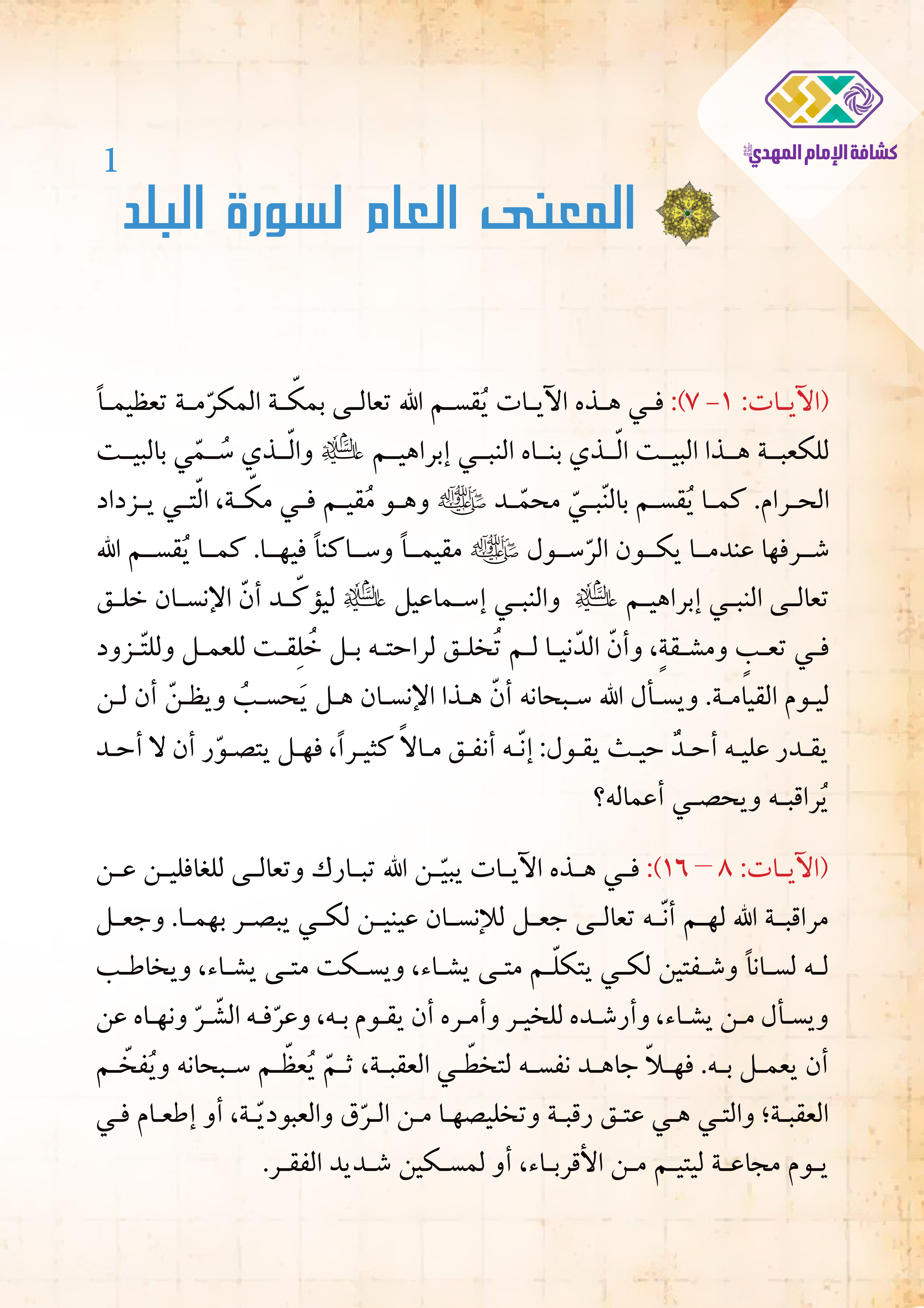 1. أتعرّف إلى المعنى العامّ لسورة البلد.