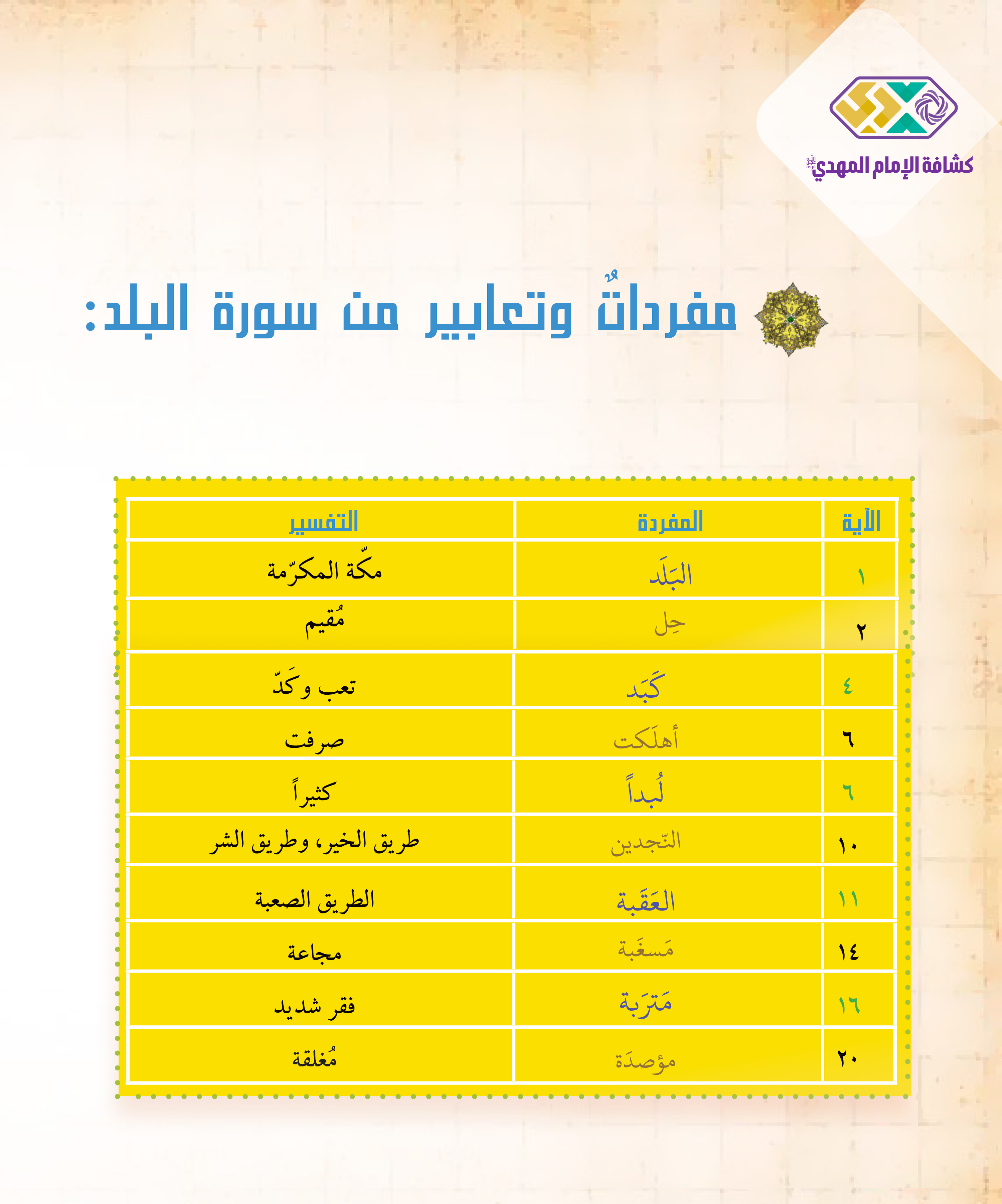 2. أتعرّف إلى معاني مفردات من سورة البلد.