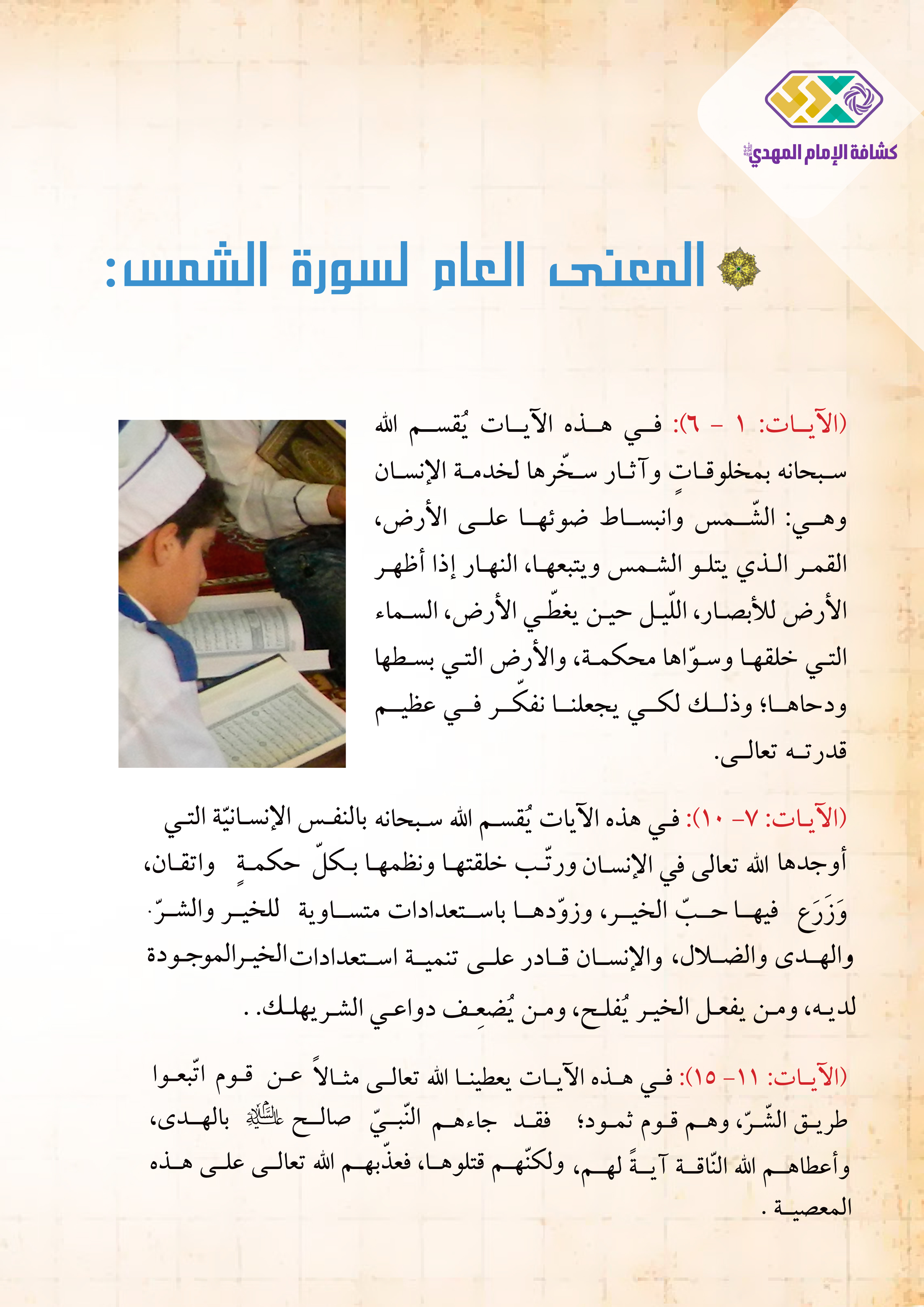 1. أتعرّف إلى المعنى العامّ لسورة الشمس.