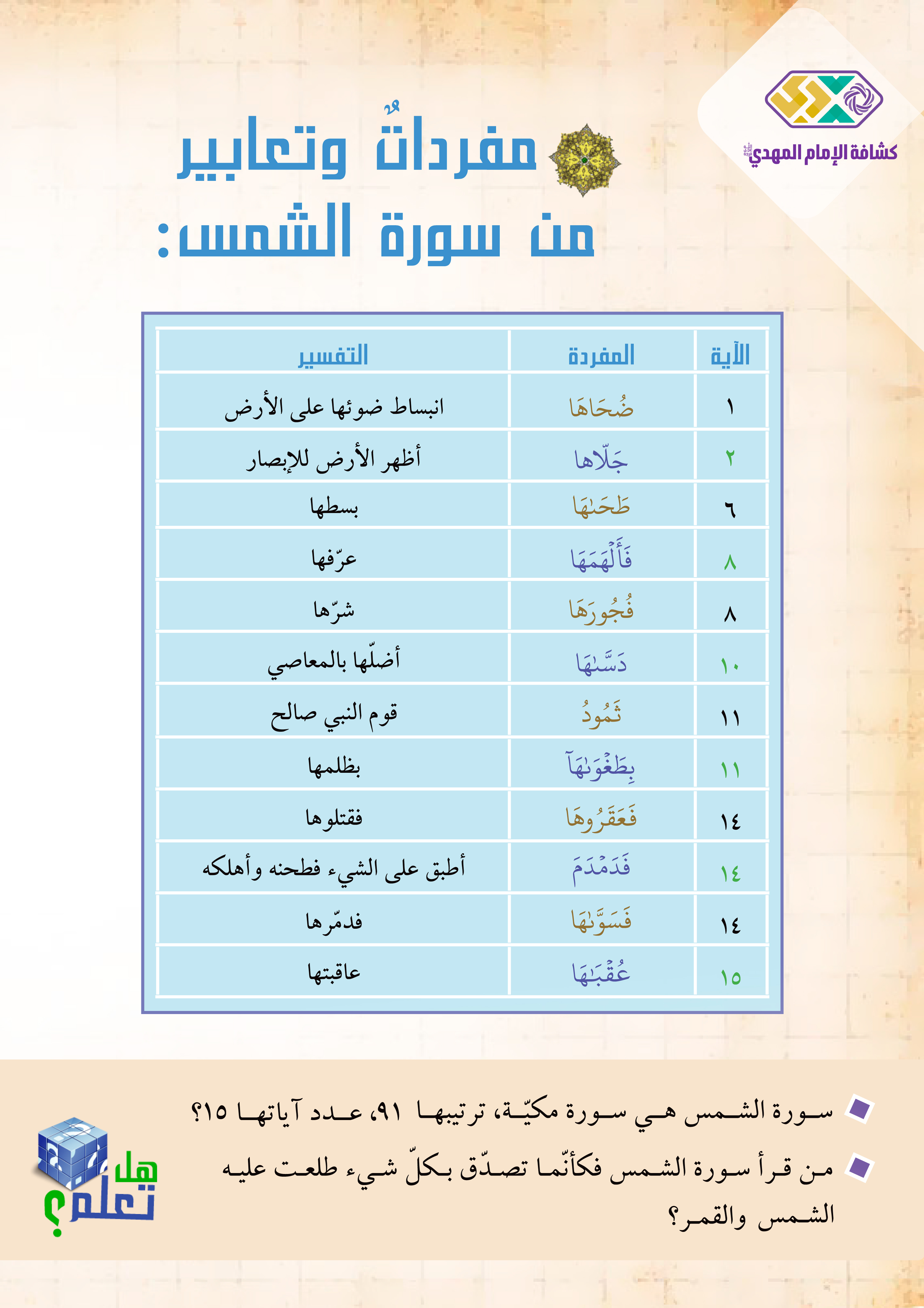 2. أتعرّف إلى معاني مفردات من سورة الشمس.
