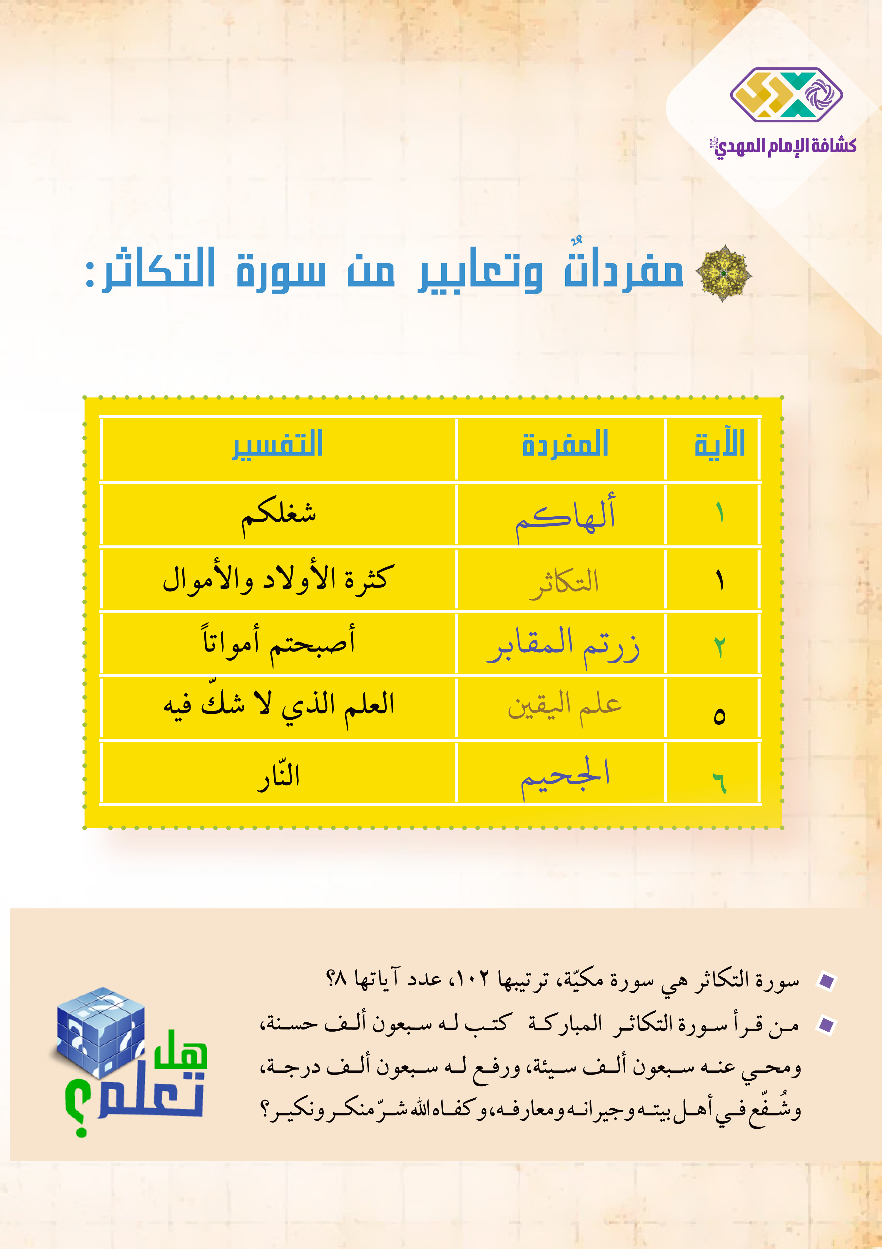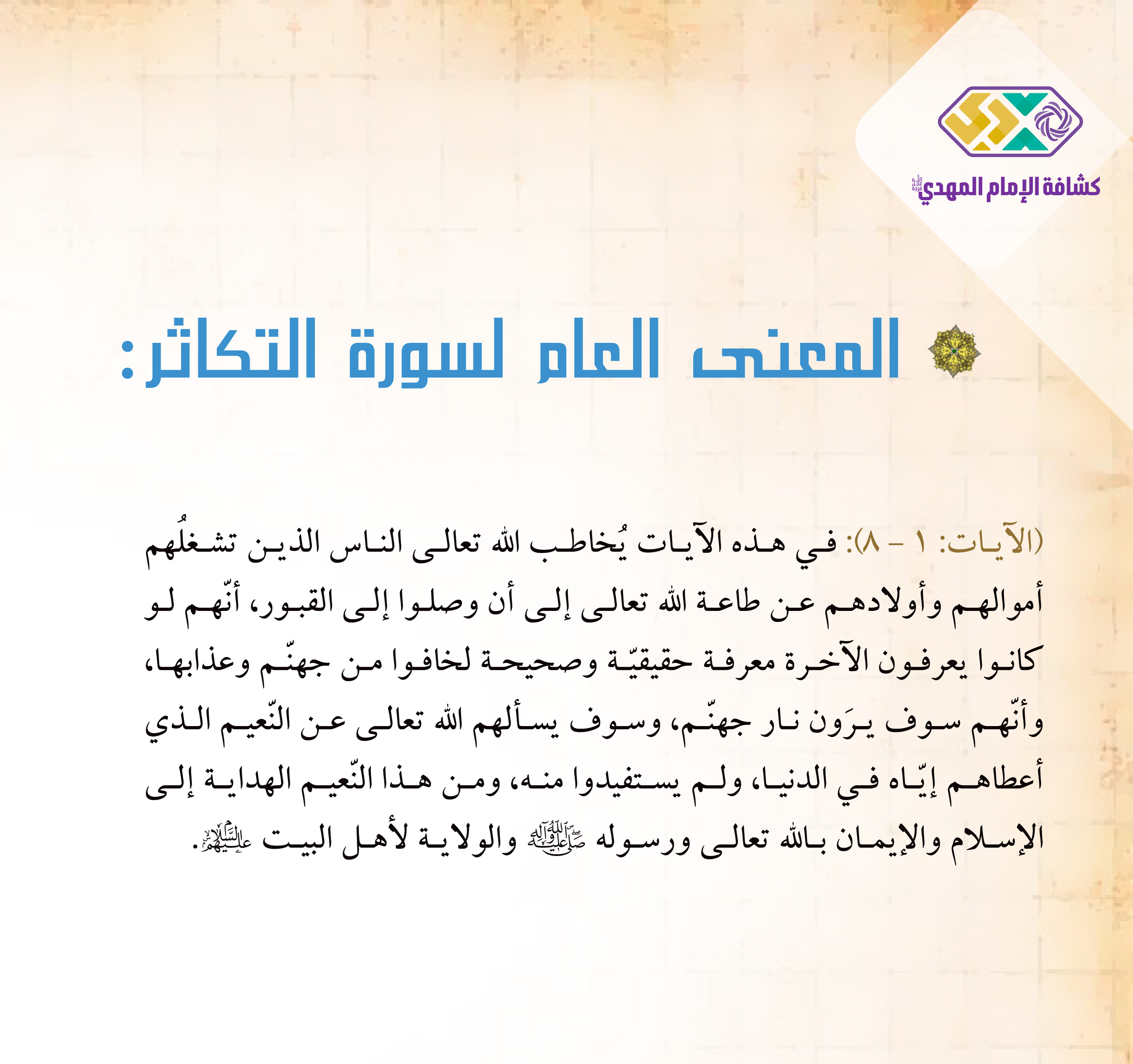 1. أتعرّف إلى المعنى العامّ لسورة التكاثر.