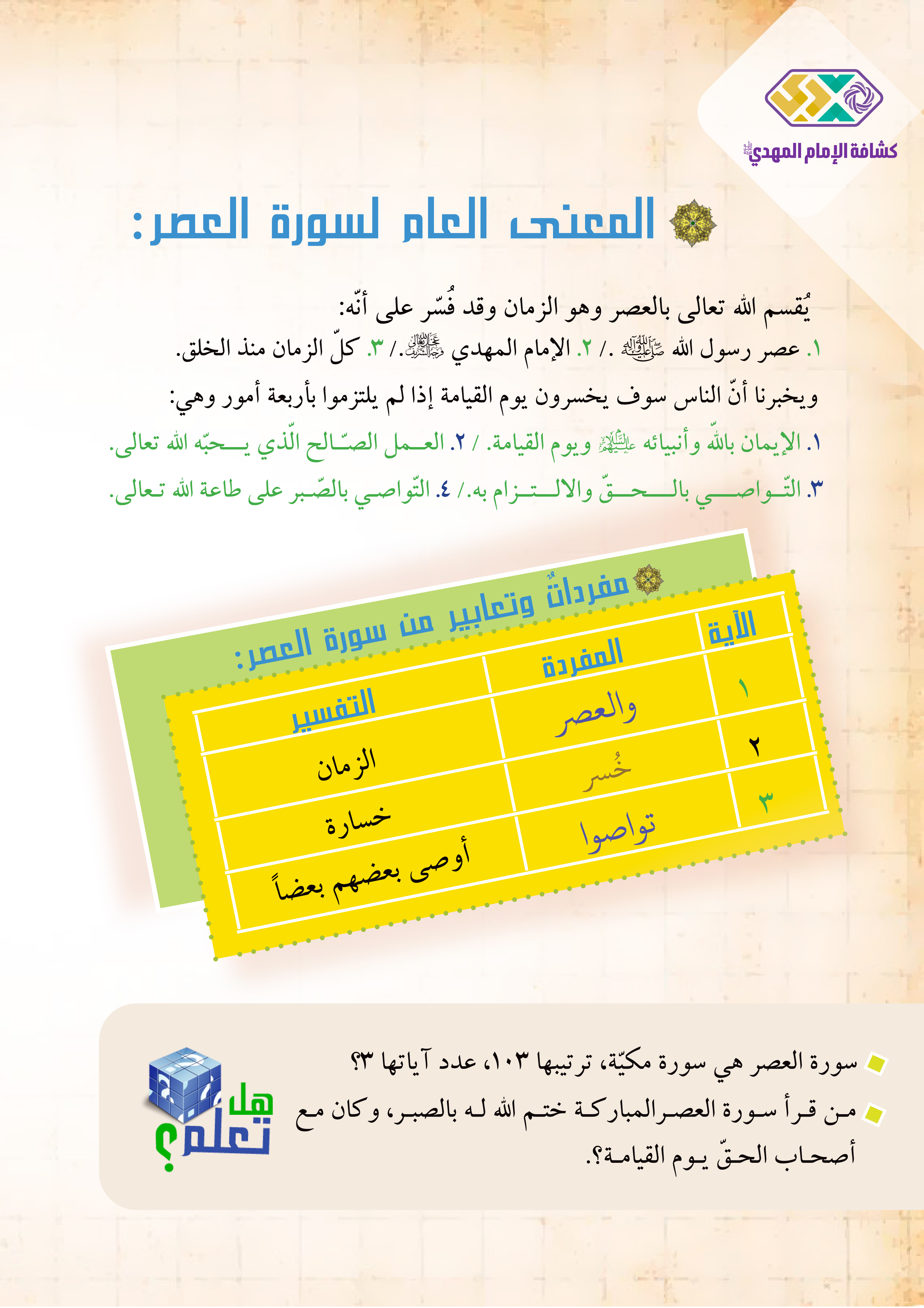 1. أتعرّف إلى المعنى العامّ لسورة العصر.