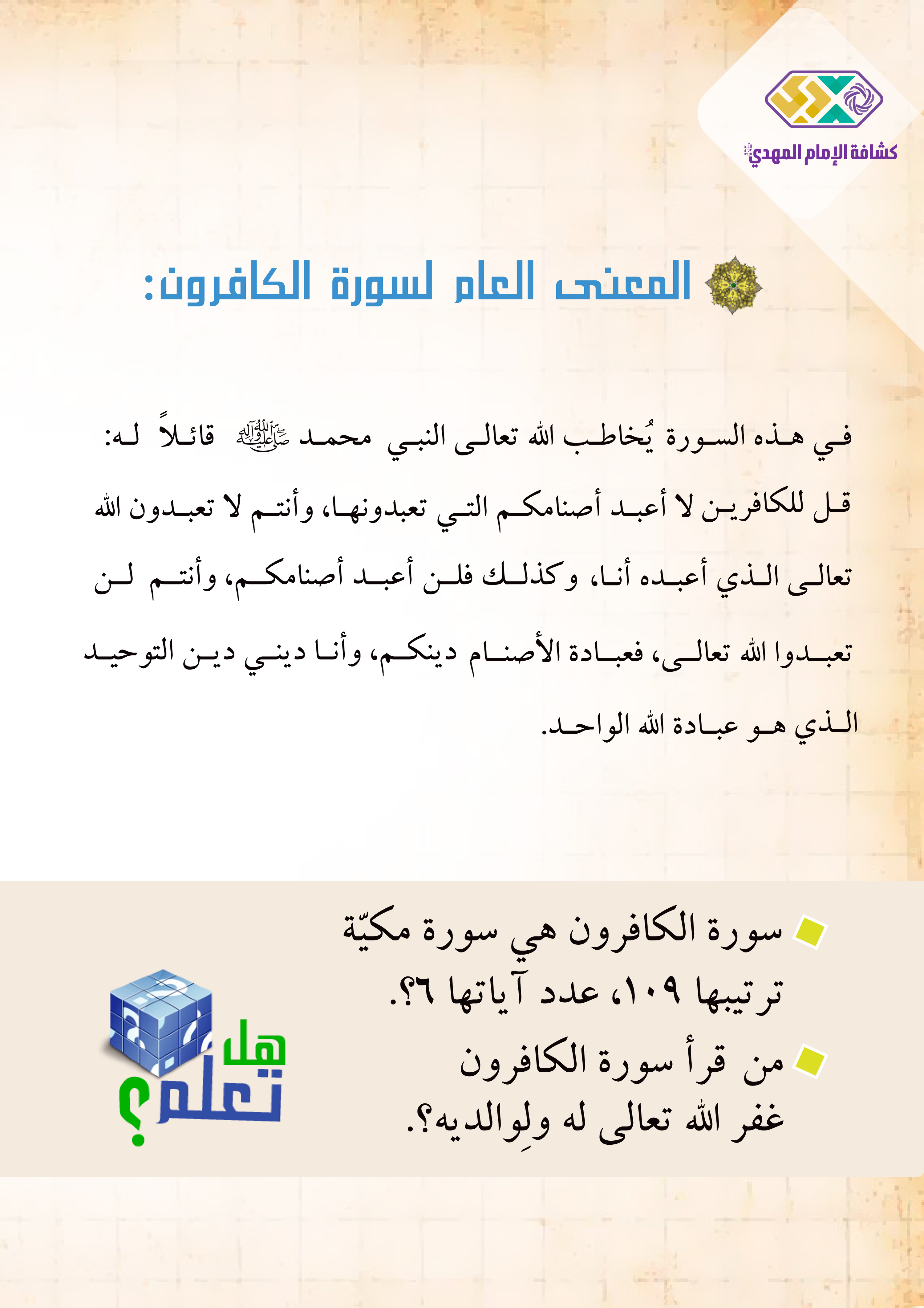 1. أتعرّف إلى المعنى العامّ لسورة الكافرون.