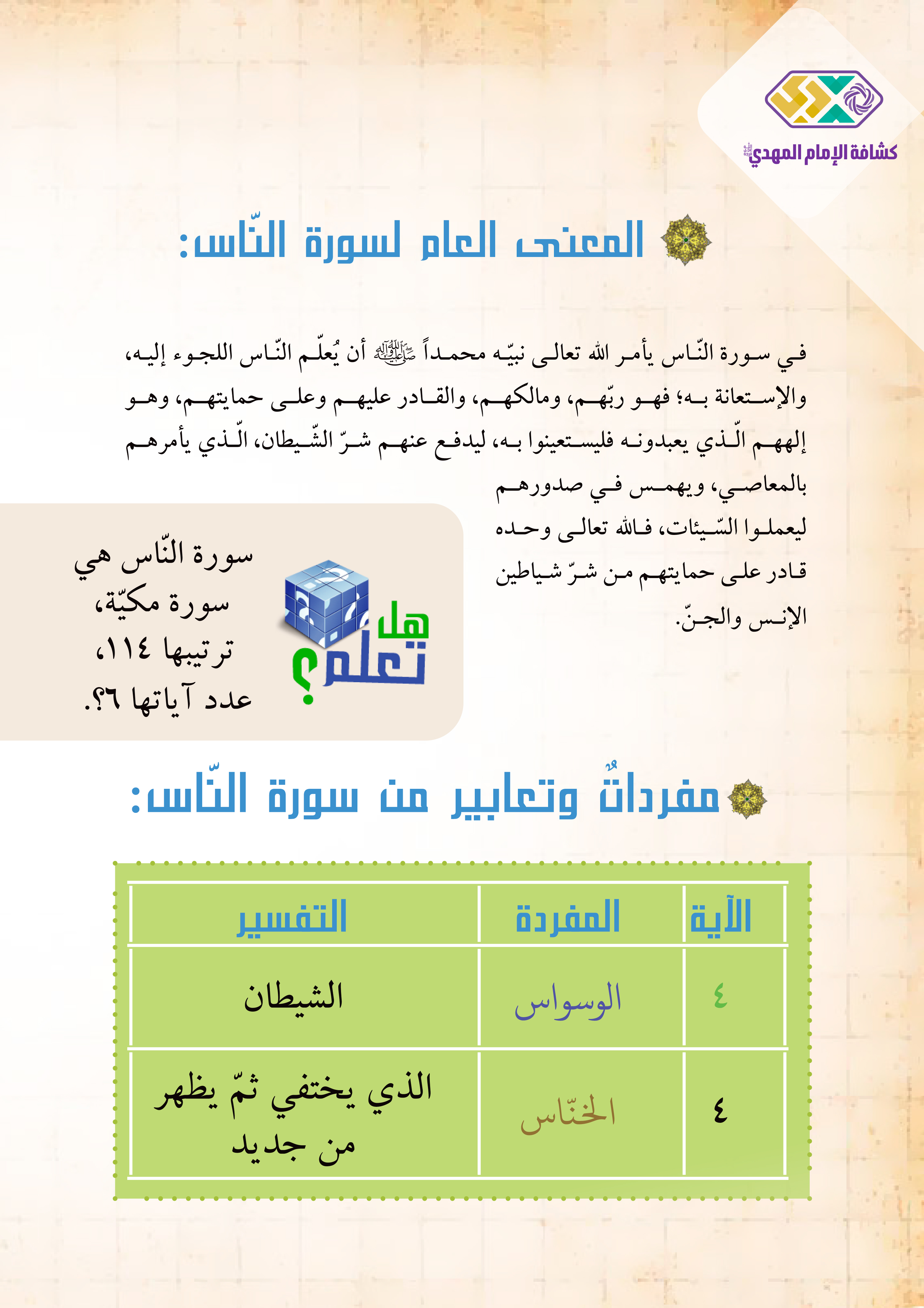1. أتعرّف إلى المعنى العامّ لسورة الناس.