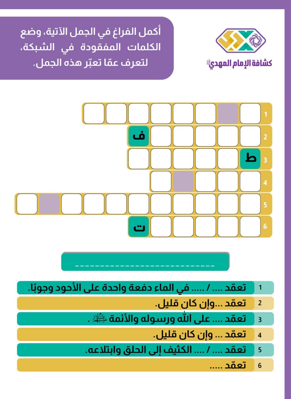 - يختتم النشاط بدعاء الإمام الحجّة عجّل الله فرجه الشريف.