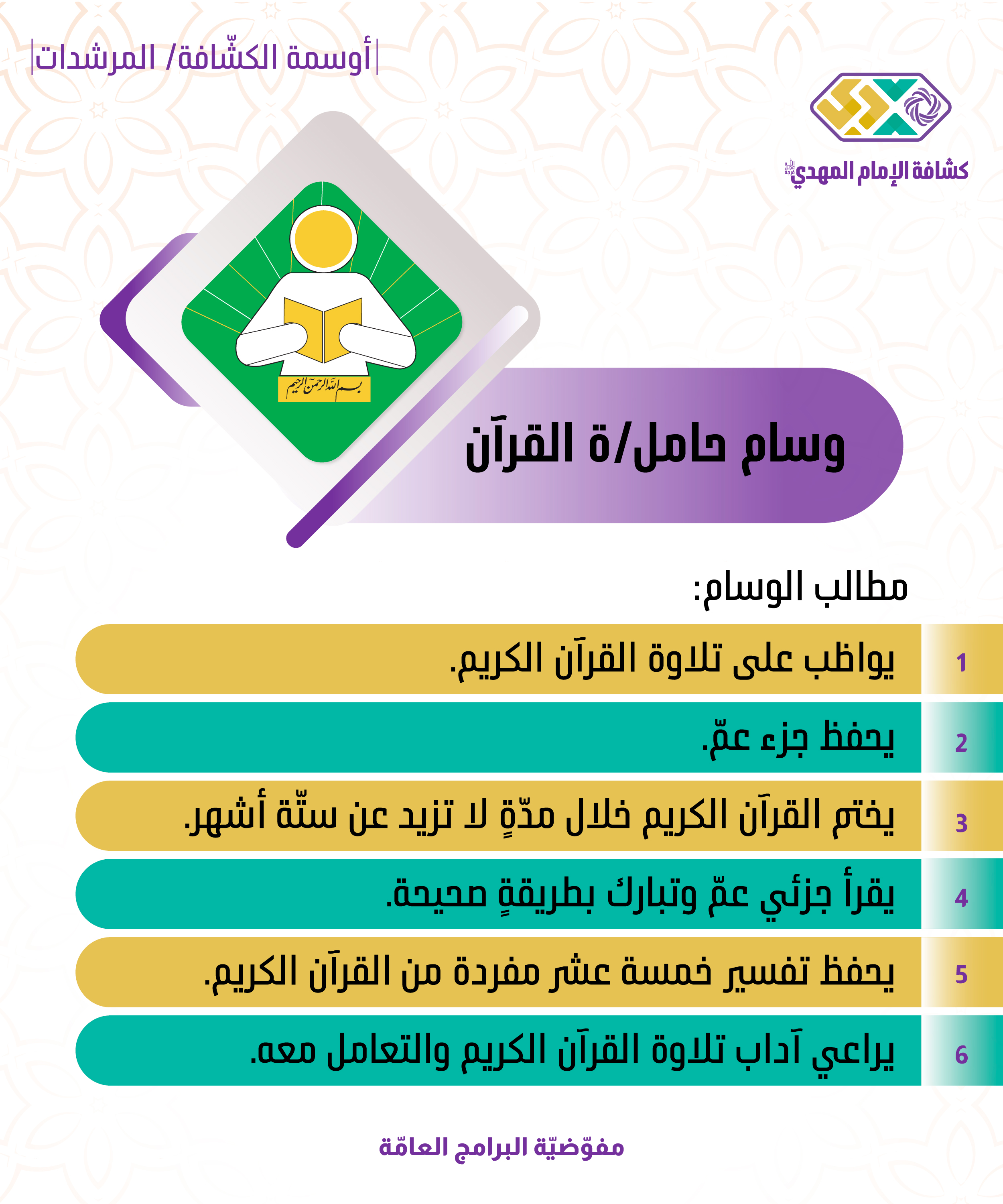 أتعرف إلى وسام: وسام حامل/ة القرآن (5د) - يرسل القائد بطاقة الوسام، ويحثّ المشاركين على تحقيق مطالبه في شهر رمضان المبارك.