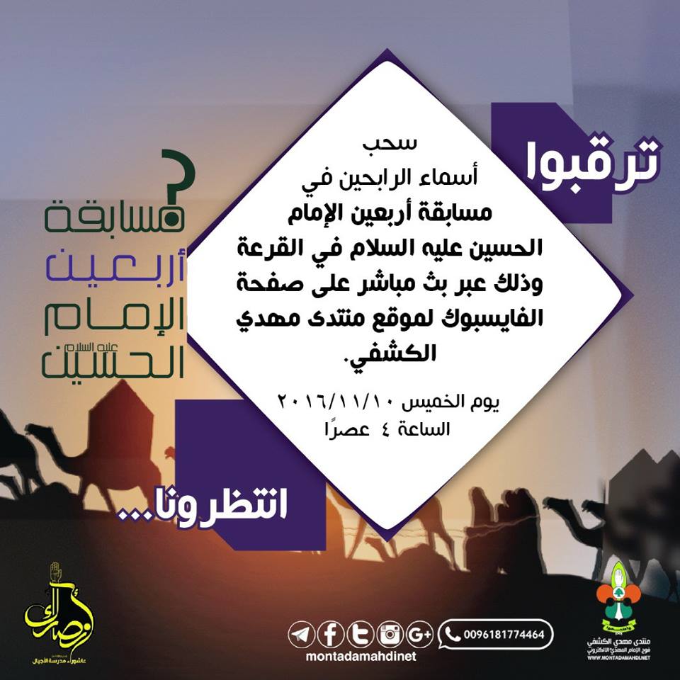 إعلان نتائج مسابقة أربعين الإمام الحسين (ع)