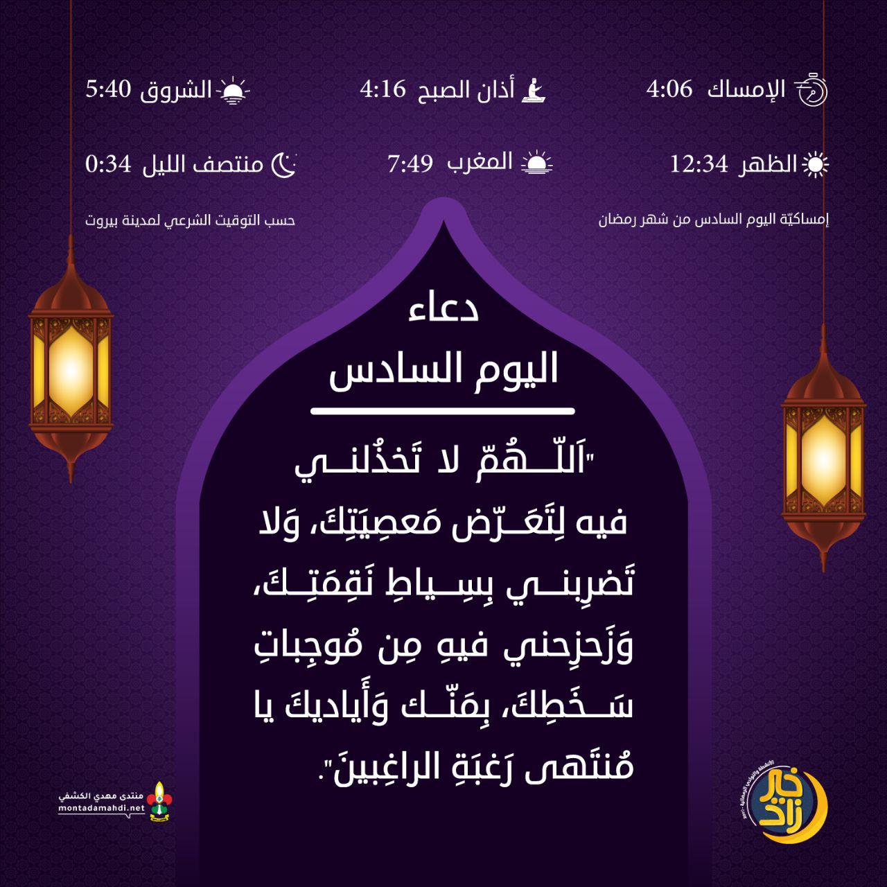 دعاء اليوم السادس
