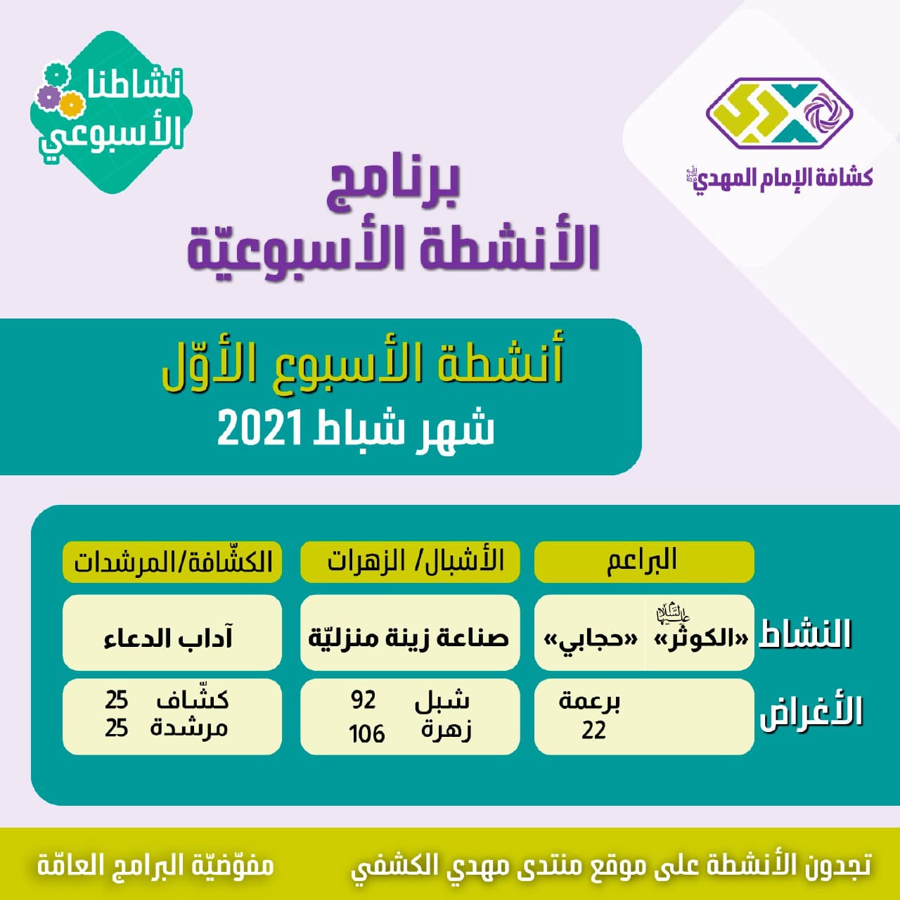 الأنشطة الأسبوعية - شباط 1- 2021