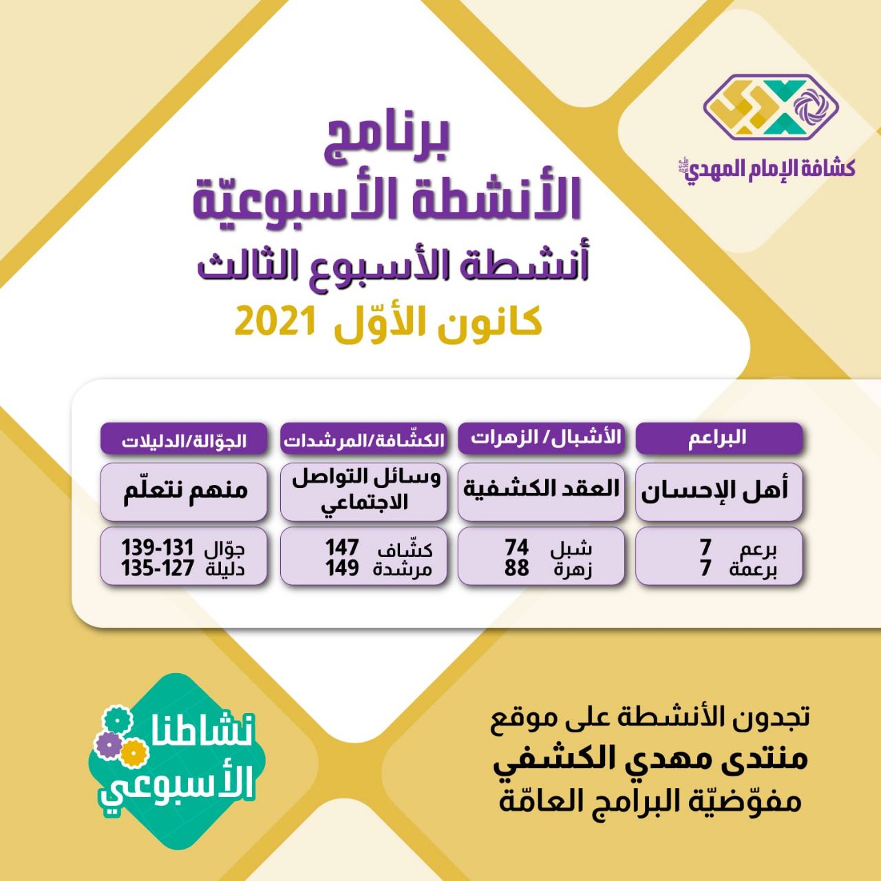 الأنشطة الأسبوعية - كانون الأول 3- 2021