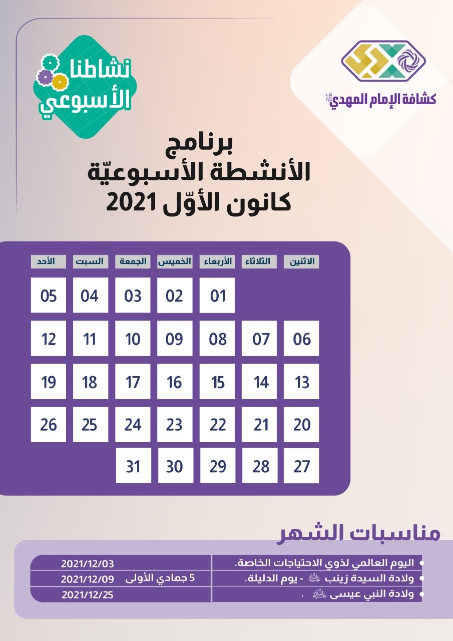 الأنشطة الأسبوعية - كانون الأول- 2021