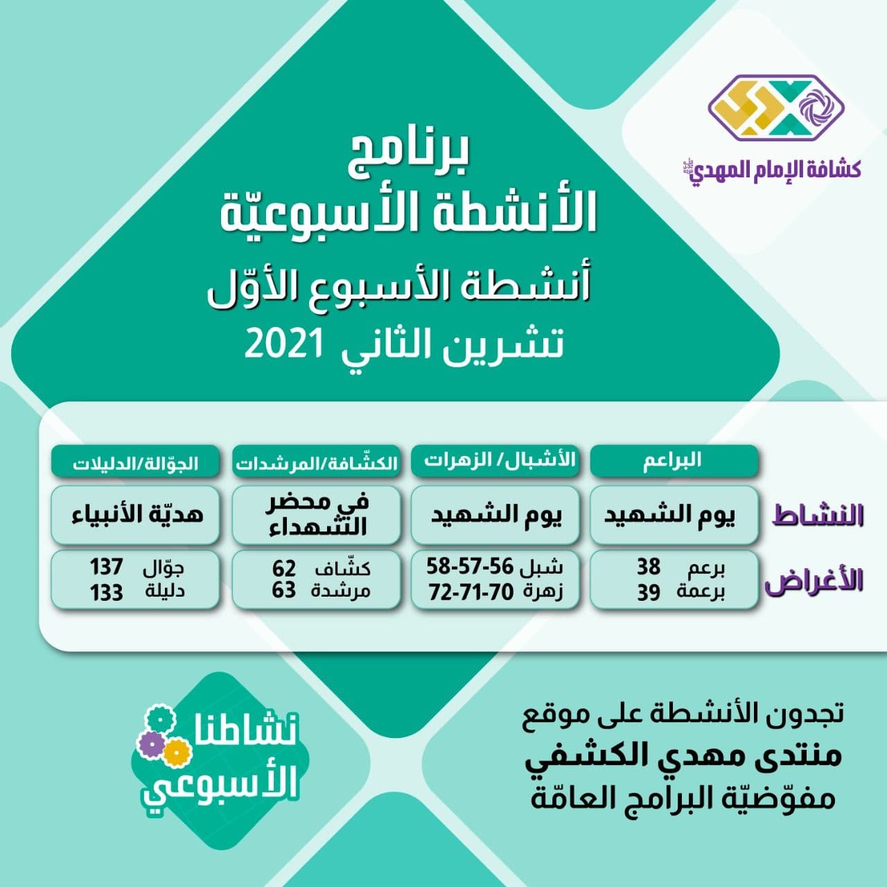 الأنشطة الأسبوعية - تشرين الثاني 1- 2021