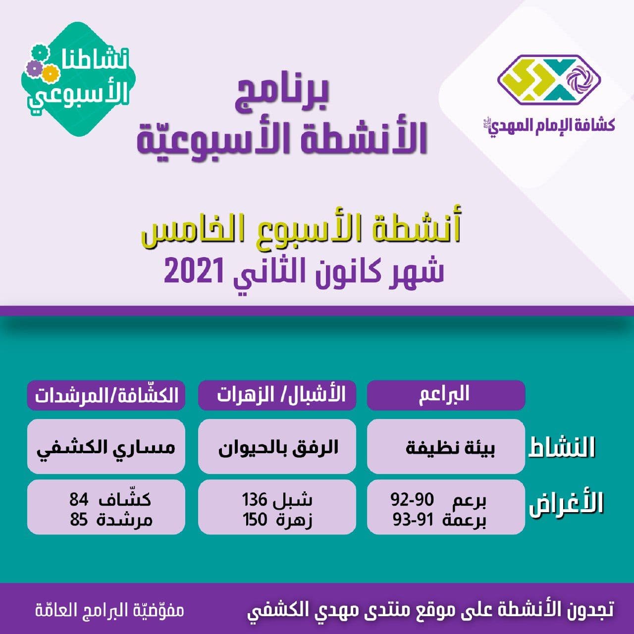 الأنشطة الأسبوعية - كانون الثاني 5 - 2021