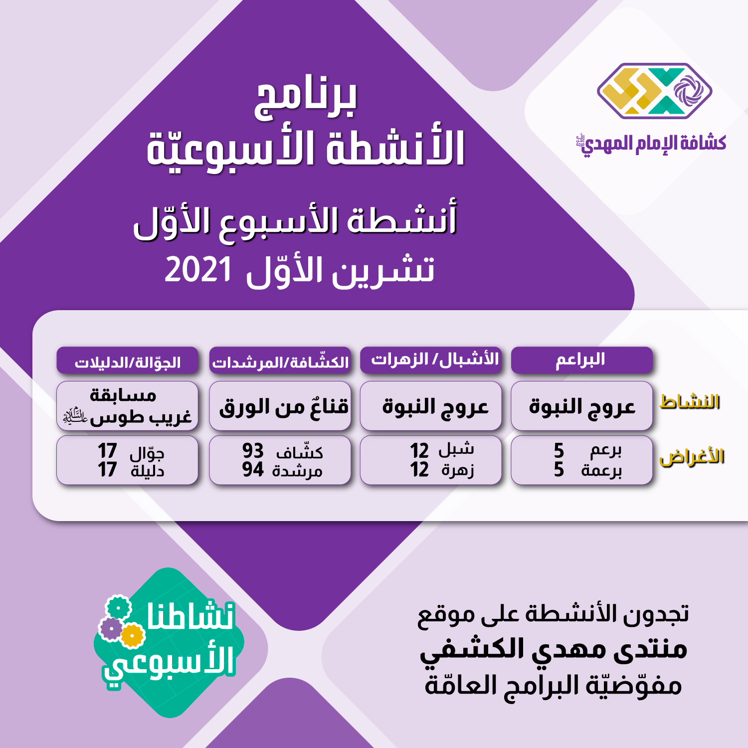 الأنشطة الأسبوعية - تشرين الأول 1- 2021