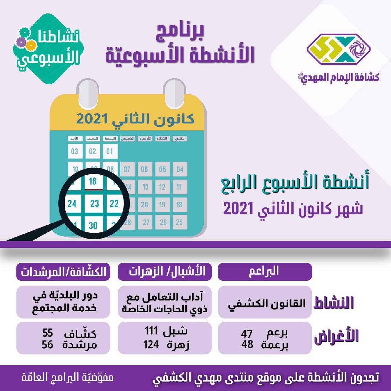الأنشطة الأسبوعية - كانون الثاني 4 - 2021