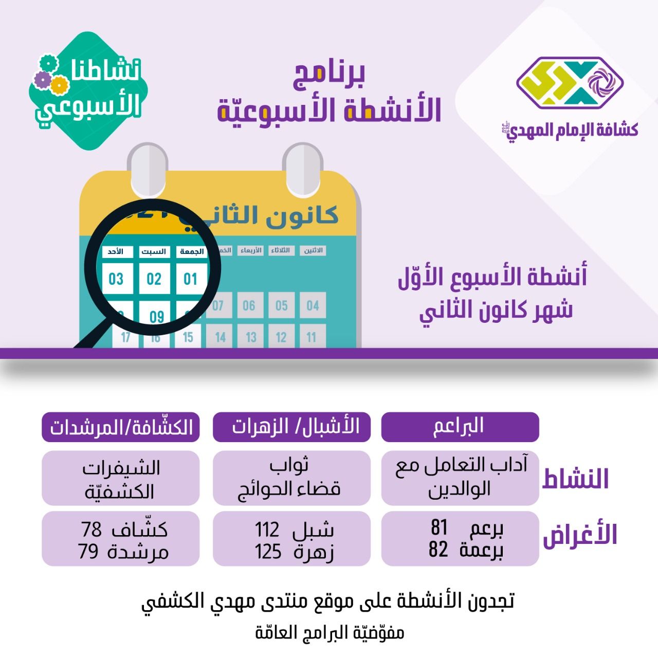 الأنشطة الأسبوعية - كانون الثاني 1 - 2021