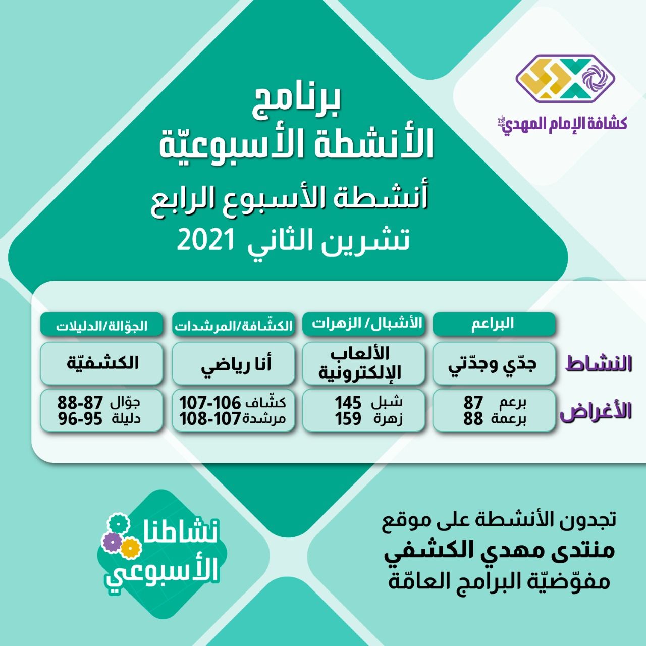 الأنشطة الأسبوعيّة - شهر تشرين الثاني 4 2021