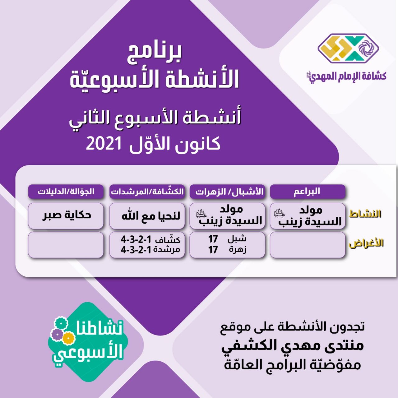 الأنشطة الأسبوعيّة - شهر كانون الأوّل 2 2021