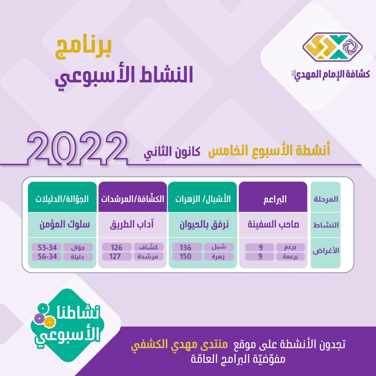 الأنشطة الأسبوعيّة - شهر كانون الثاني 5 2022