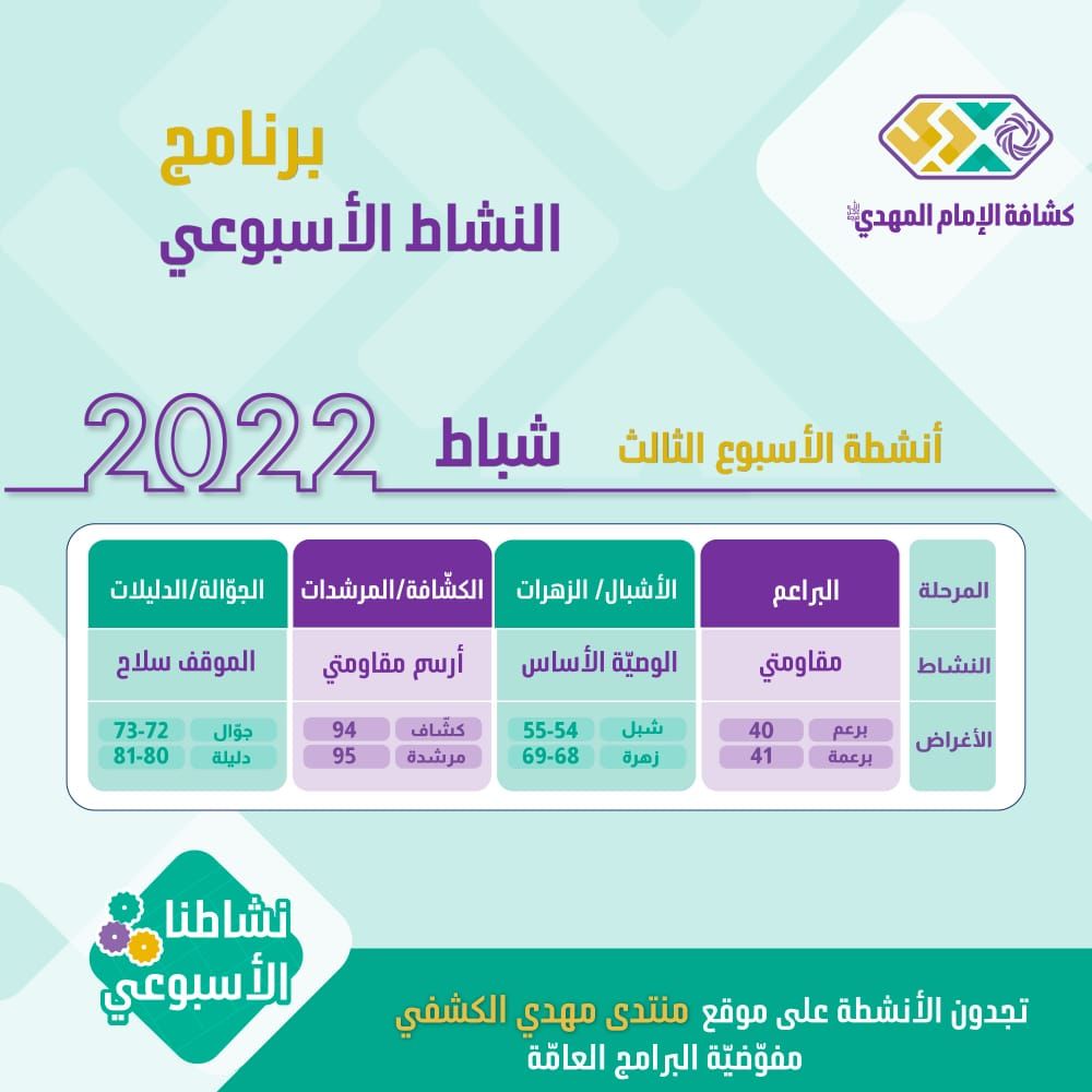 الأنشطة الأسبوعيّة - شهر شباط 3 2022