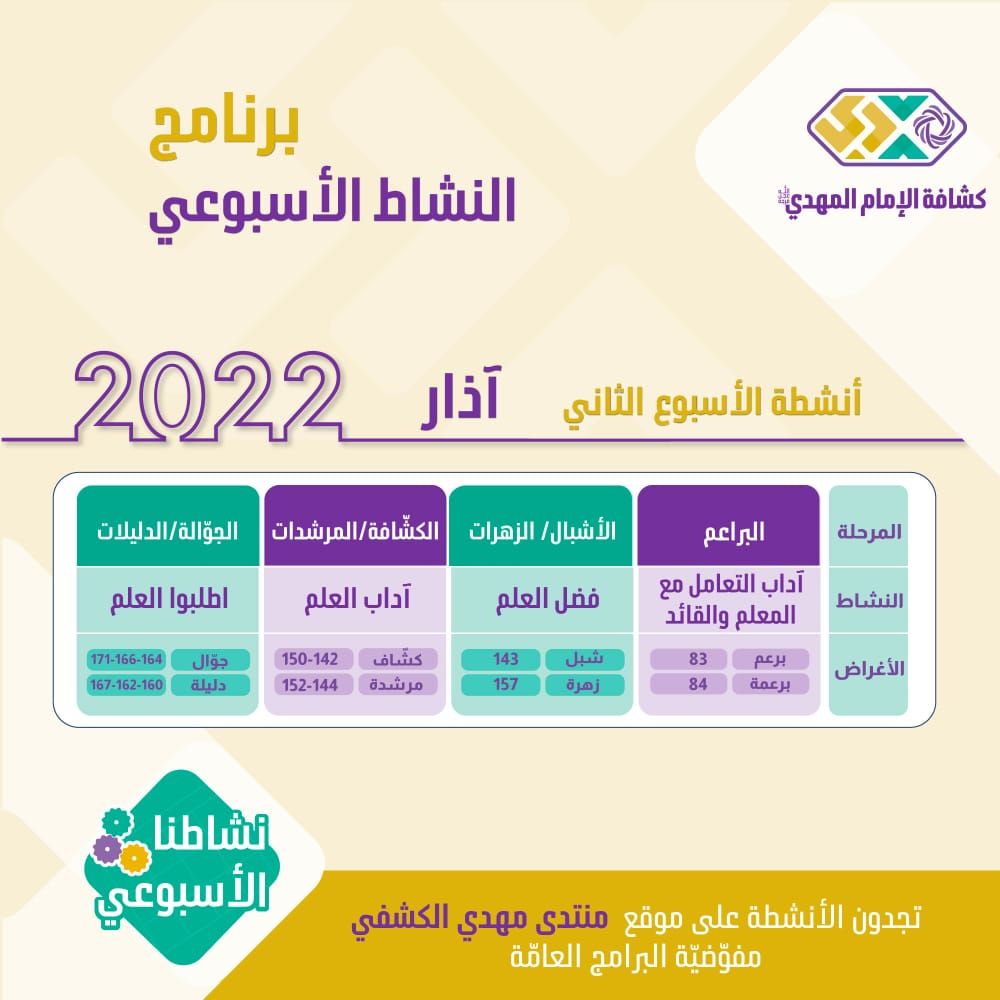الأنشطة الأسبوعيّة - شهر آذار 2 2022