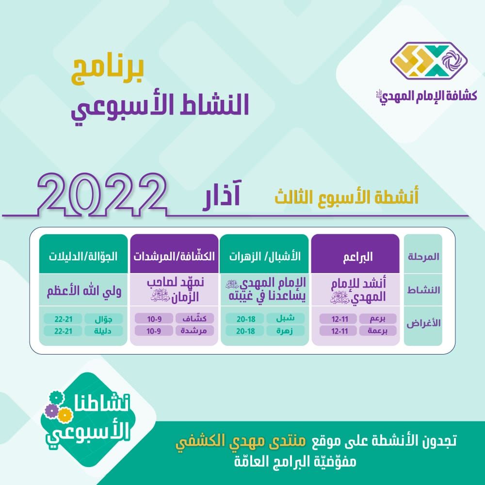 الأنشطة الأسبوعيّة - شهر آذار 3 2022