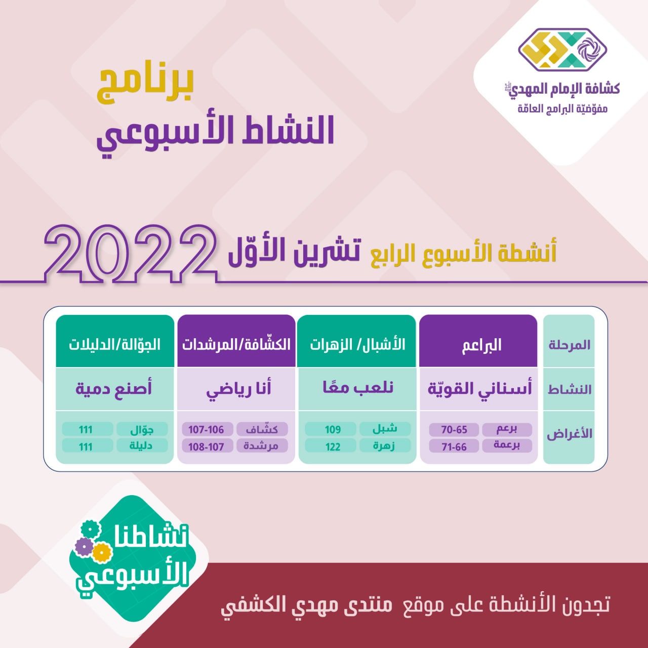 الأنشطة الأسبوعيّة - شهر تشرين الأوّل 4 - 2022